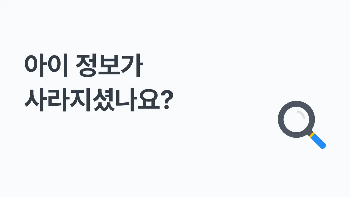 로그인 후 이전에 보이던 자녀 정보가 보이지 않는다면? 당황하지 말고 아래 내용을 확인해주세요.