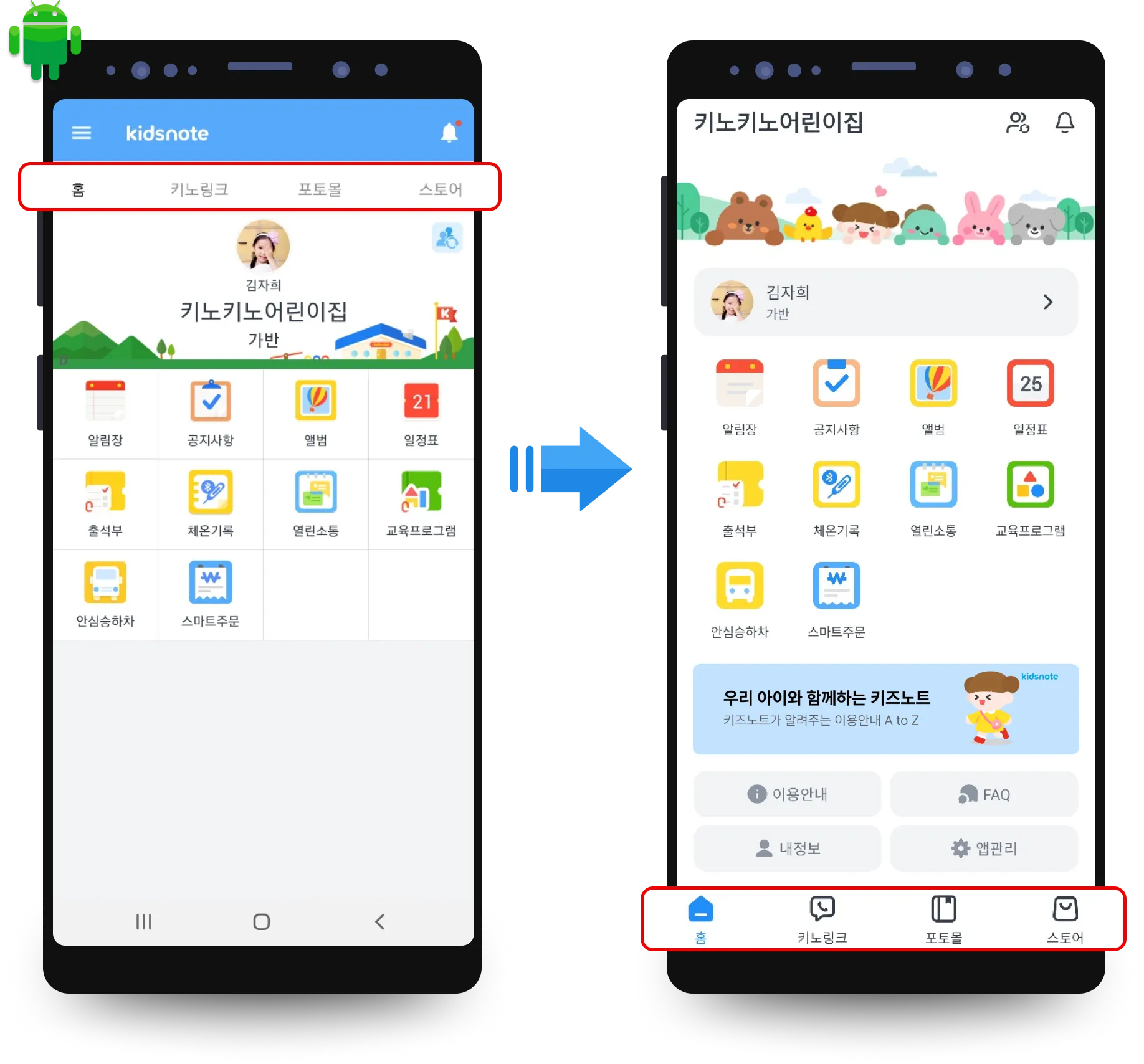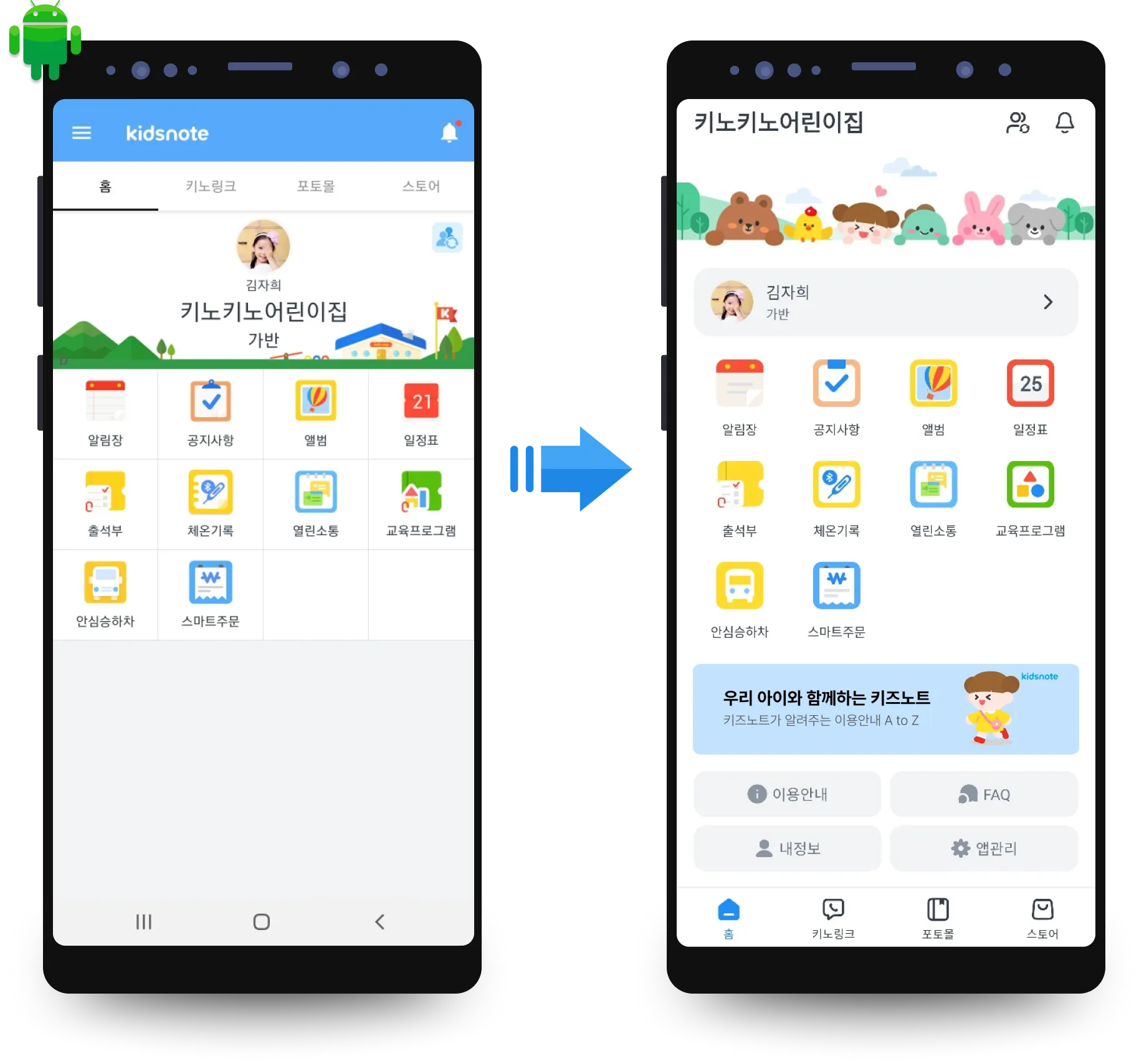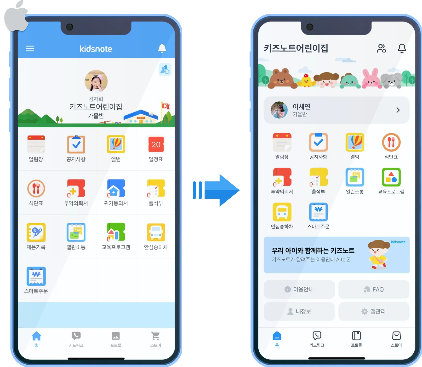 키즈노트에 새로운 변화! 5월 키즈노트 앱 화면이 더욱 편리해지고 예뻐졌어요.