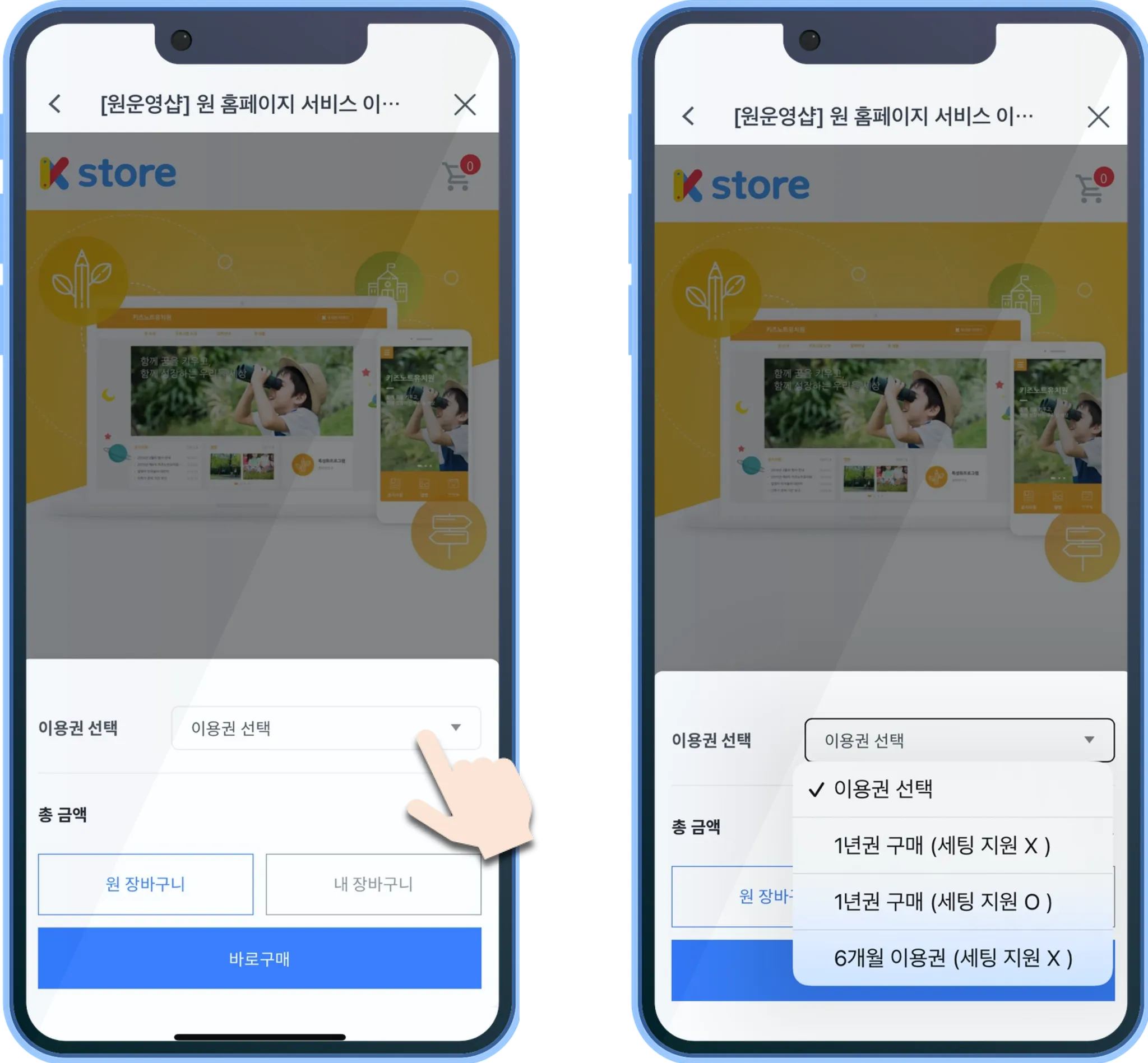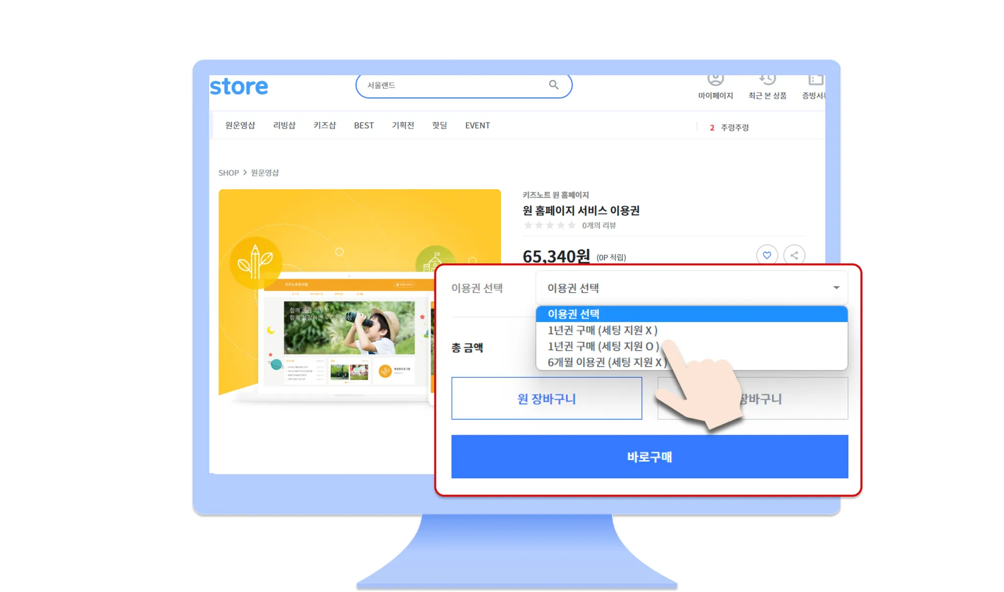 4. 이용기간 선택 후 원 홈페이지 서비스 이용권을 구매합니다.