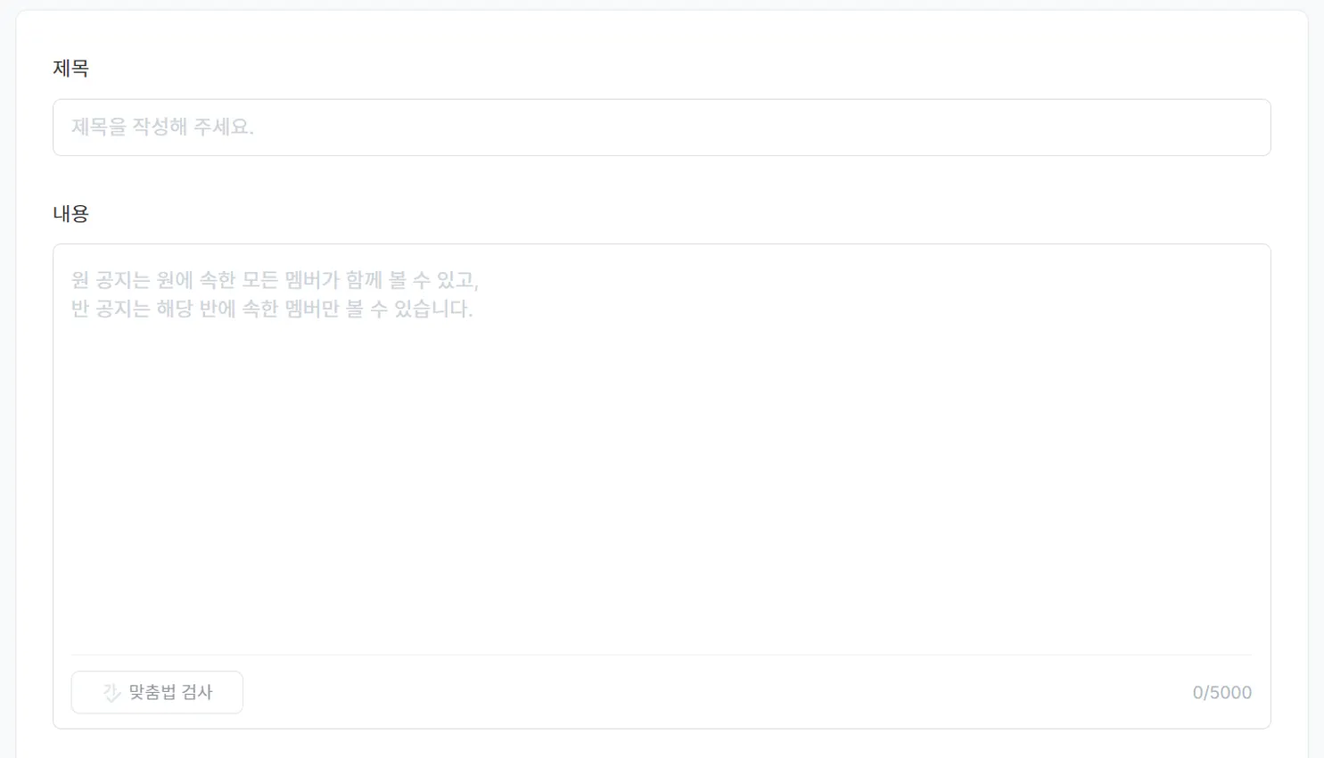 공지사항 제목과 내용(최대 5000자)을 작성해주세요.