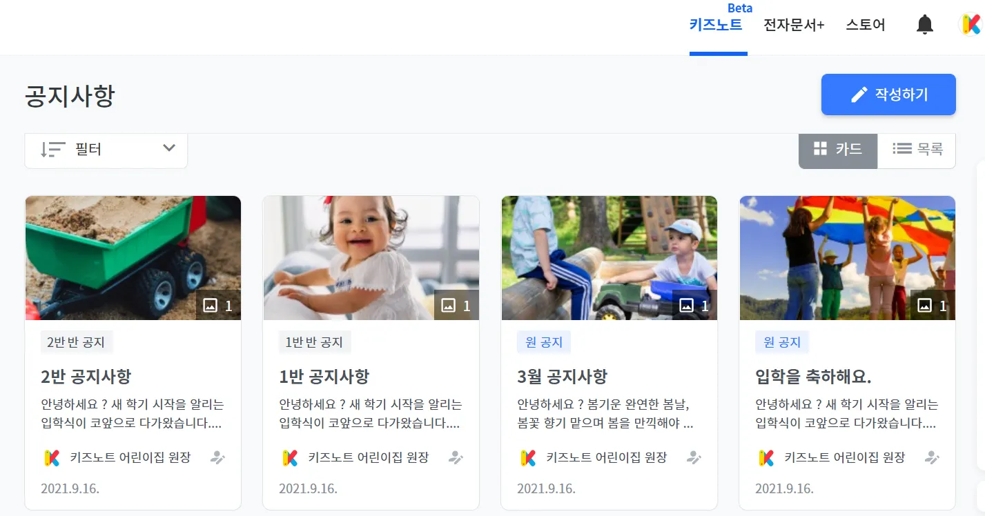 - 신입 원아가 키즈노트 가입시 이전에 작성한 공지사항 글이 보여집니다.