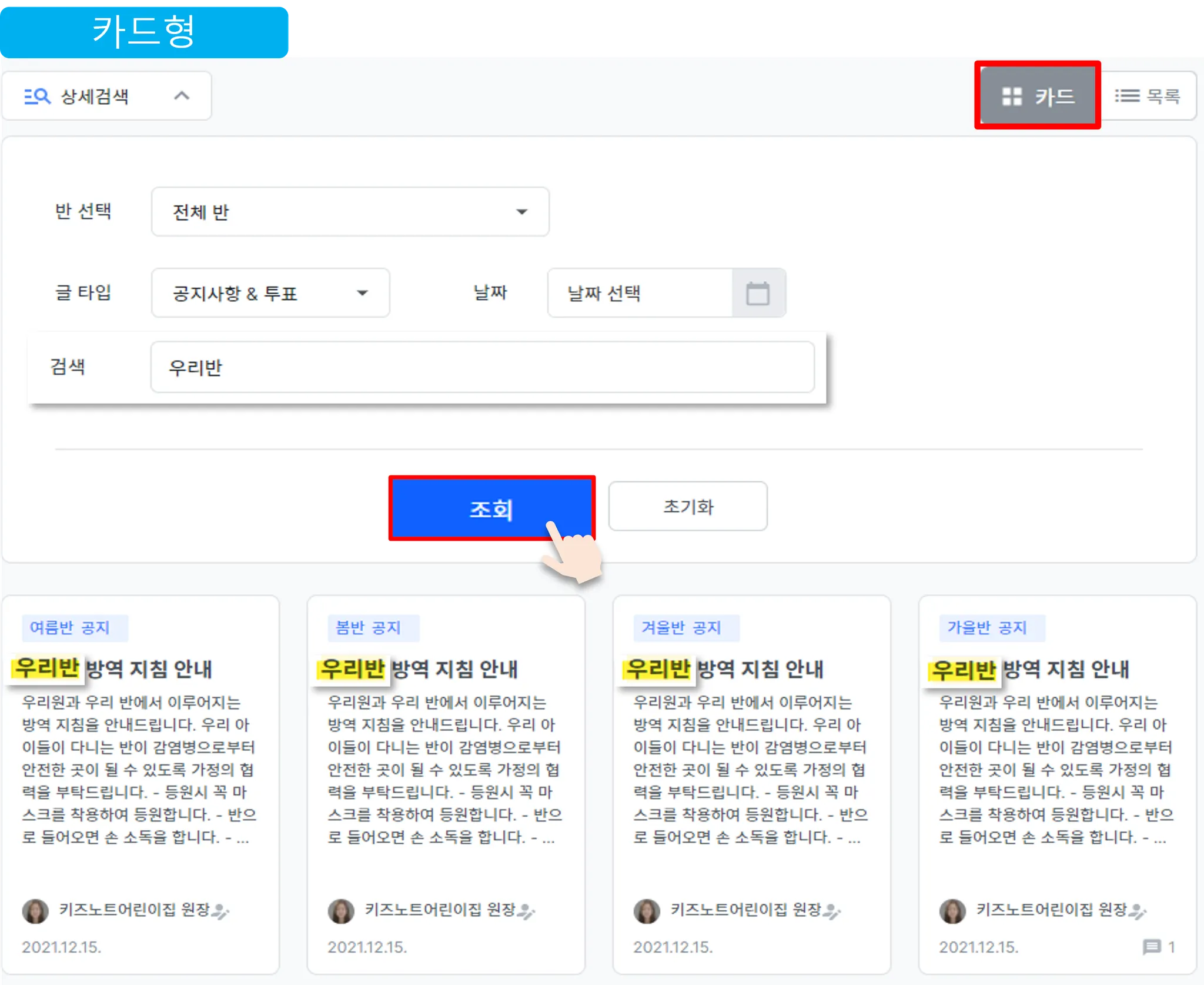 - 카드형 또는 목록형으로 조회 가능합니다.