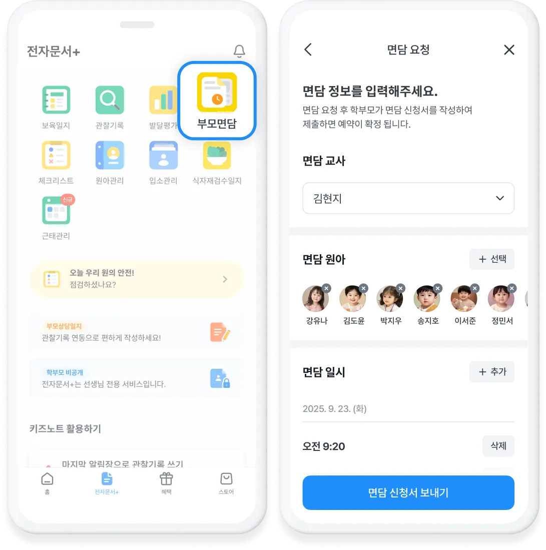 희망 일정이 담긴 면담 신청서를 학부모님께 미리 보낼 수 있어요.