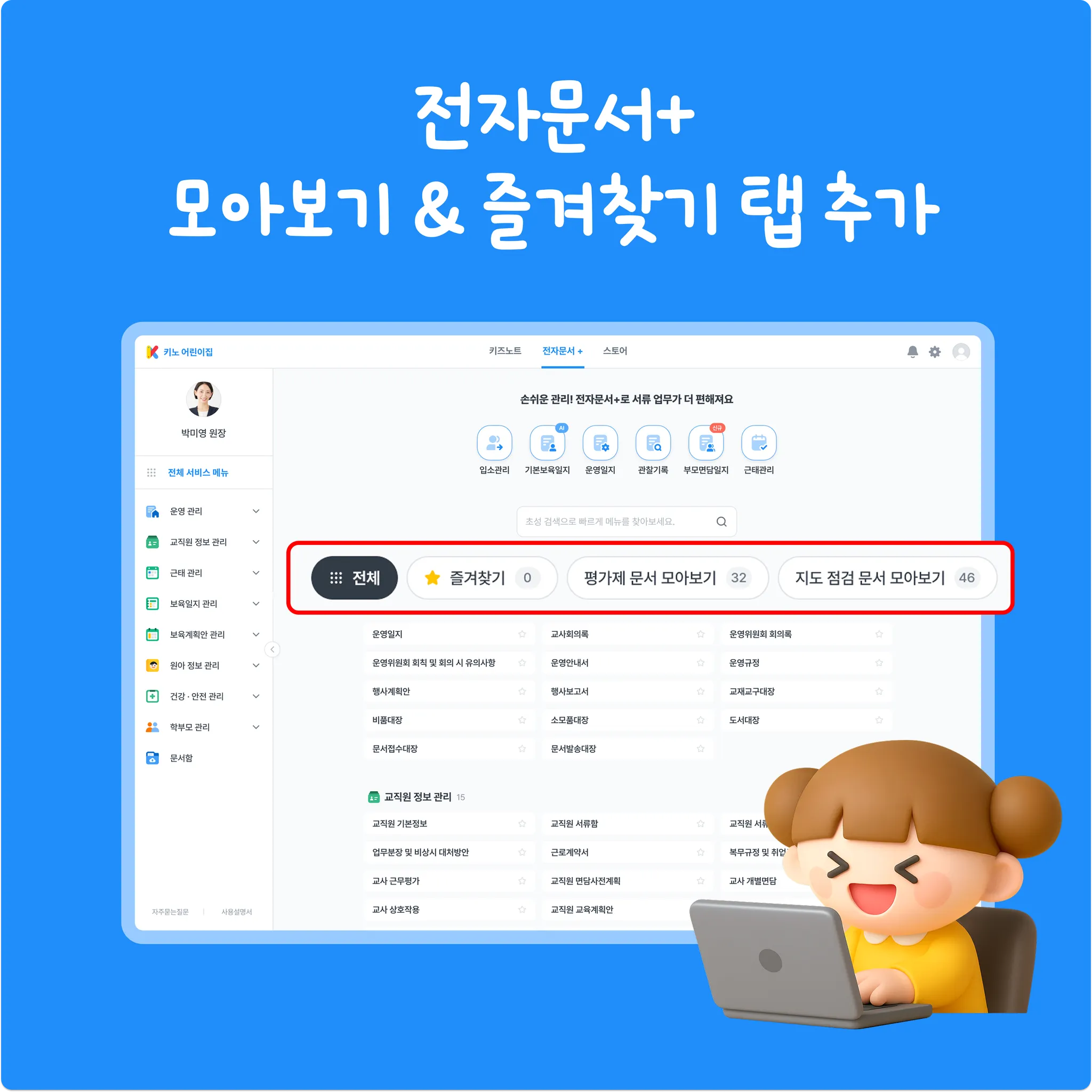 전자문서+ 모아보기와 즐겨찾기 탭이 생겼어요.