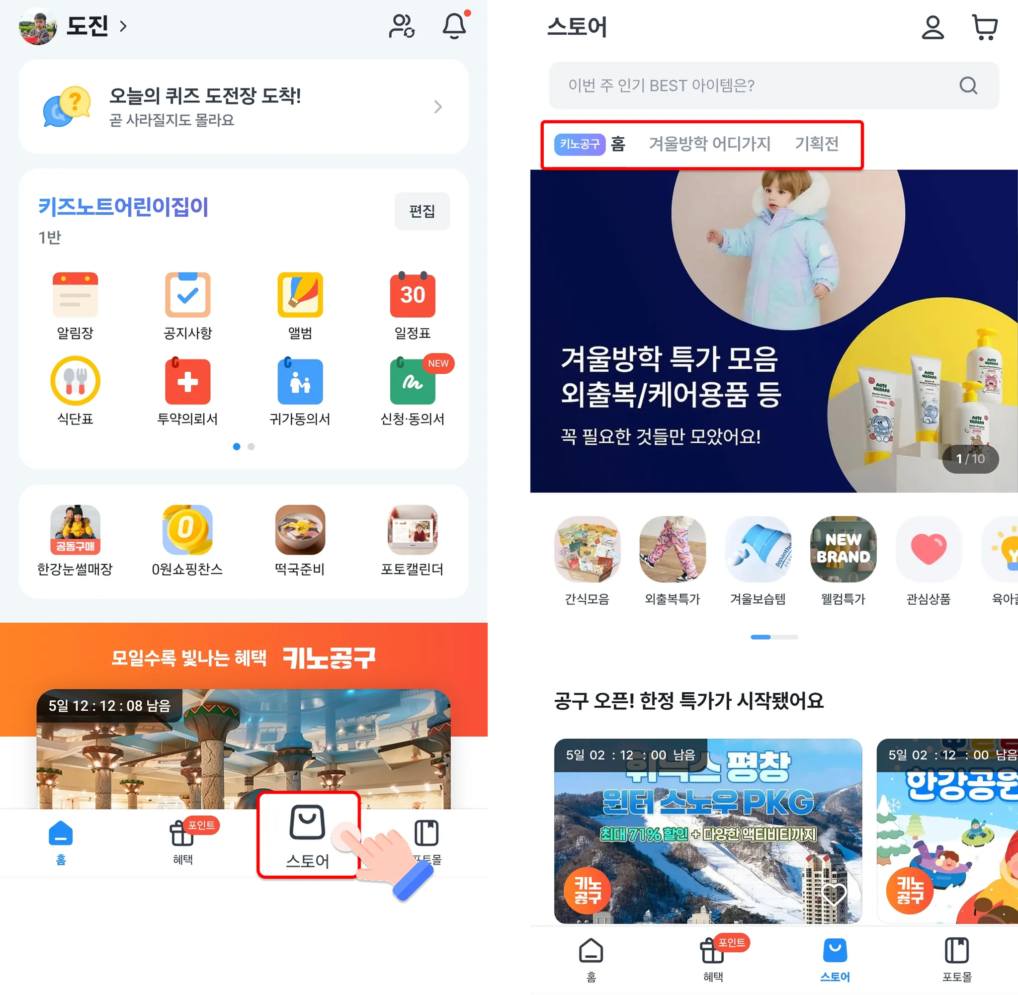 키즈노트 앱 하단에서 스토어를 눌러주세요.
