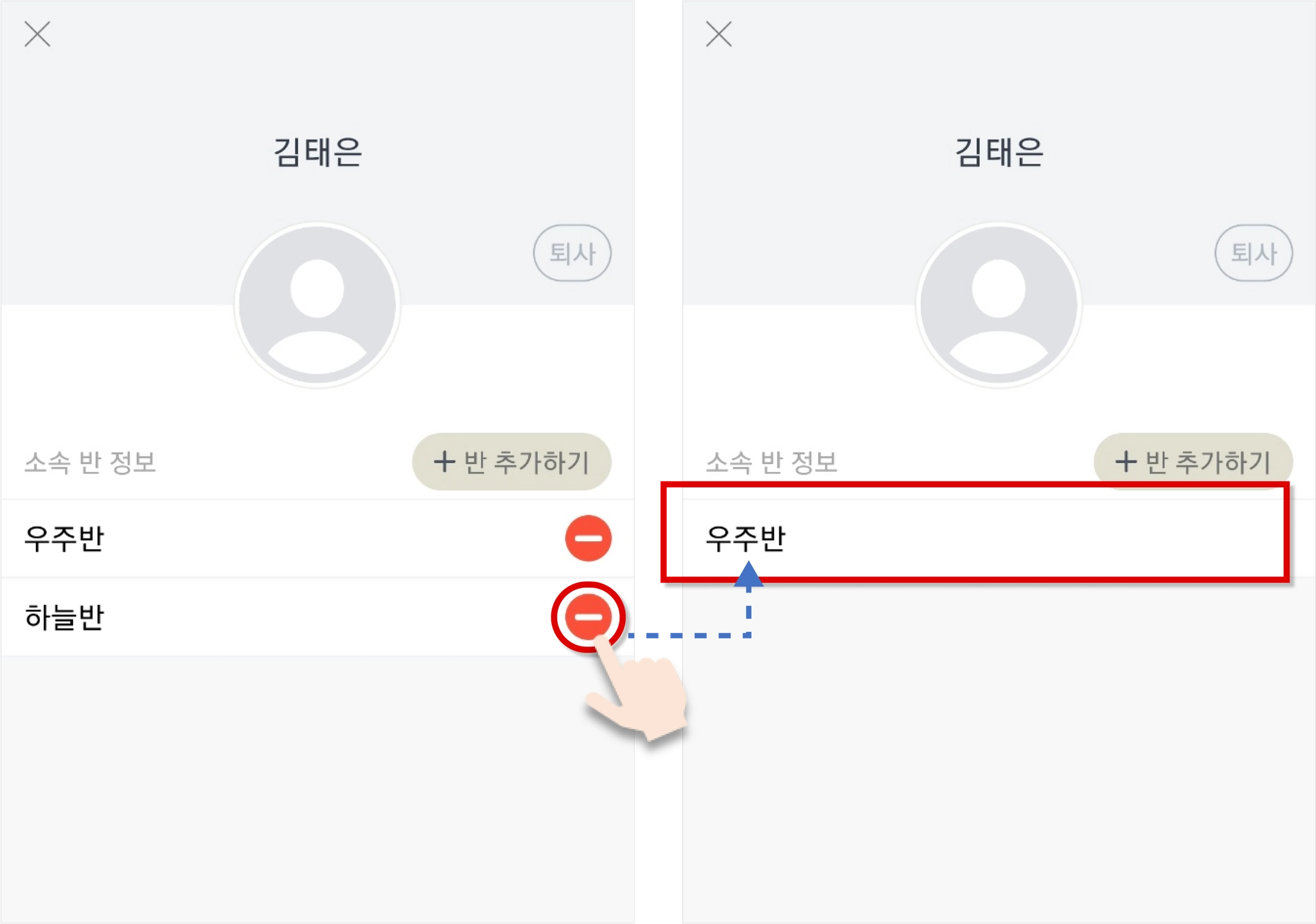 소속 반 정보가 삭제되는 경우, 삭제된 반의 글은 더 이상 확인할 수 없어요!