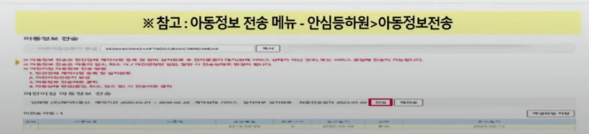 아동정보 전송메뉴 위치