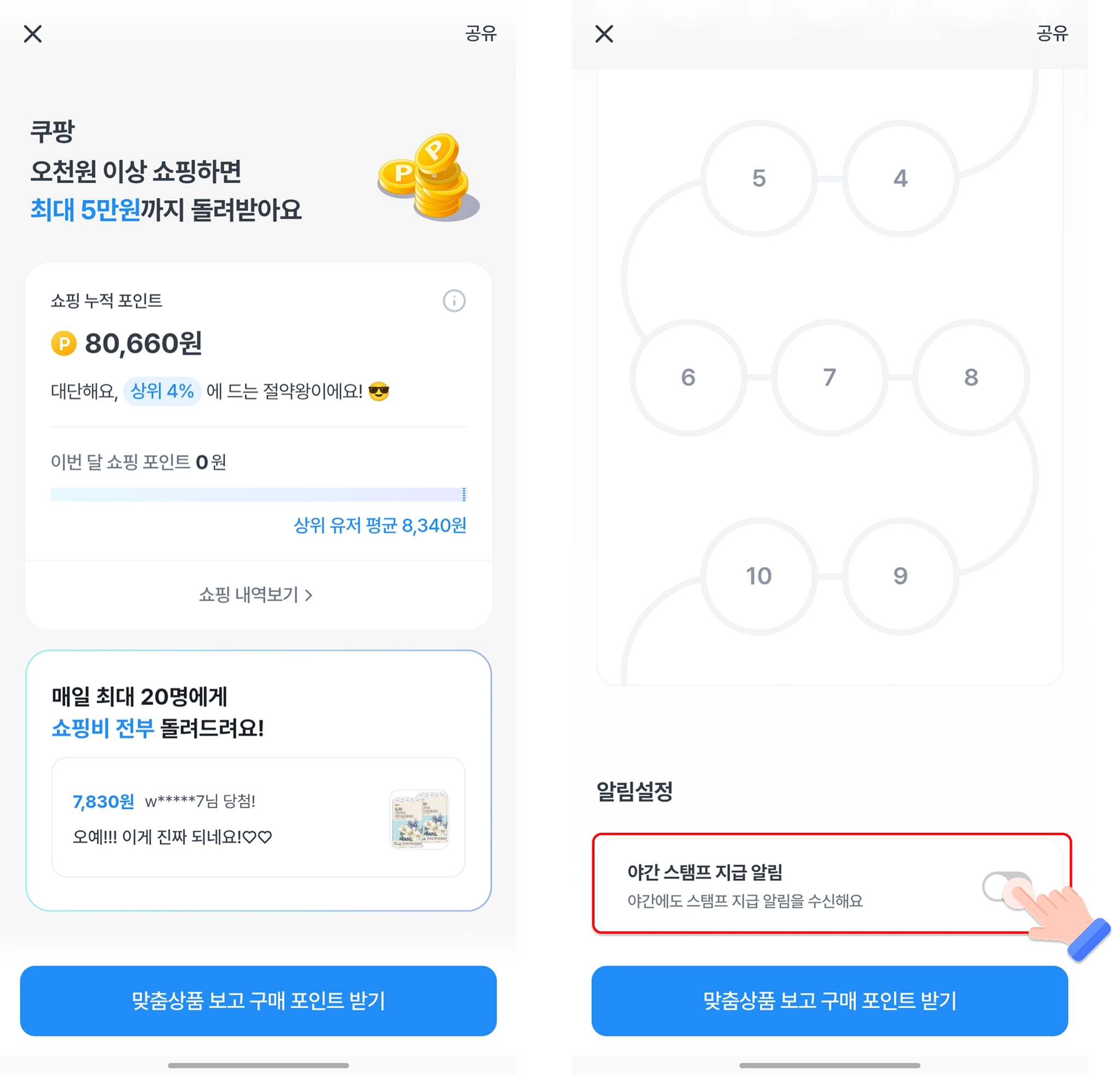 쿠팡 스탬프 야간 알림 해제