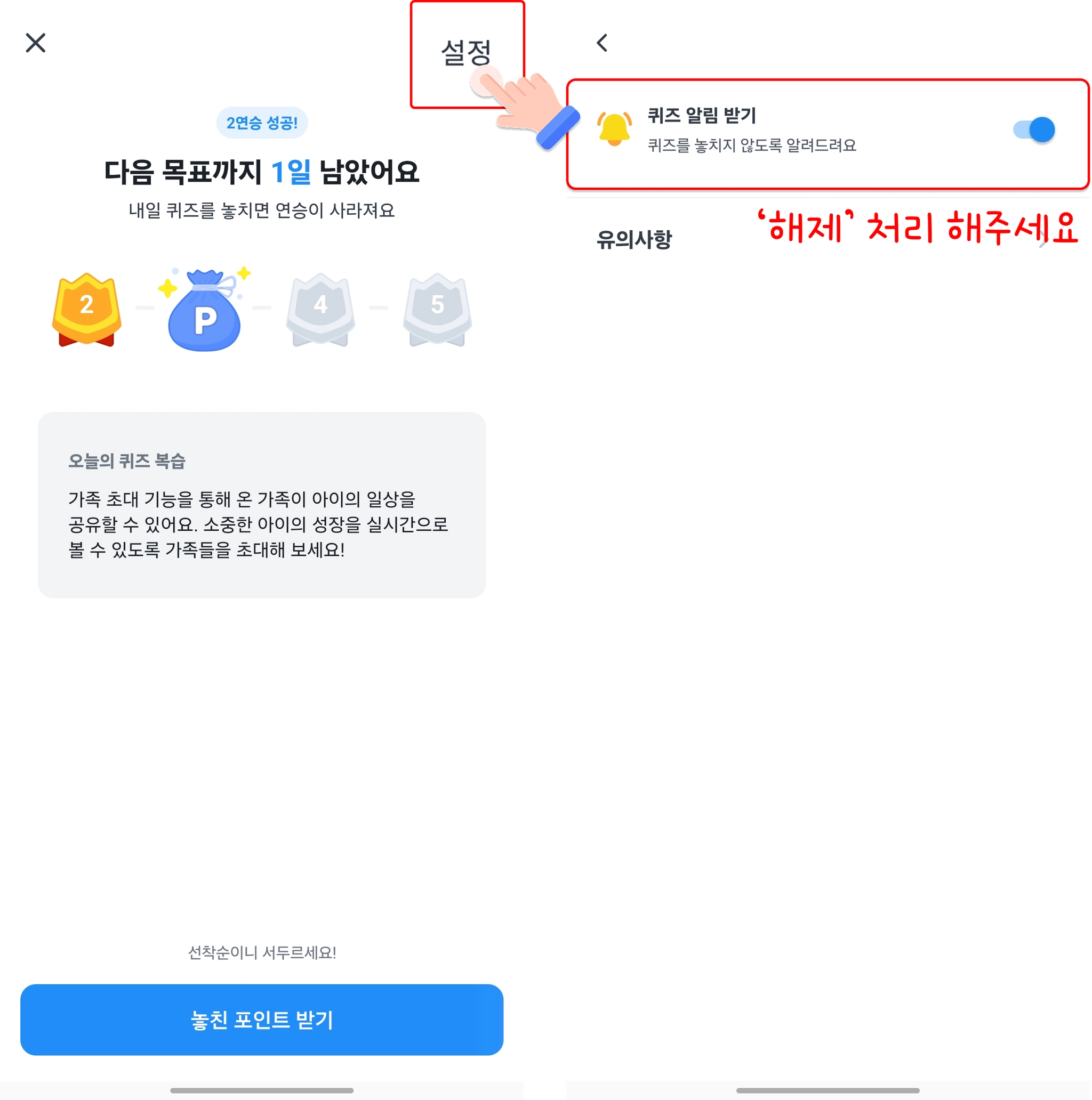 오늘의 퀴즈 알림 ON/OFF