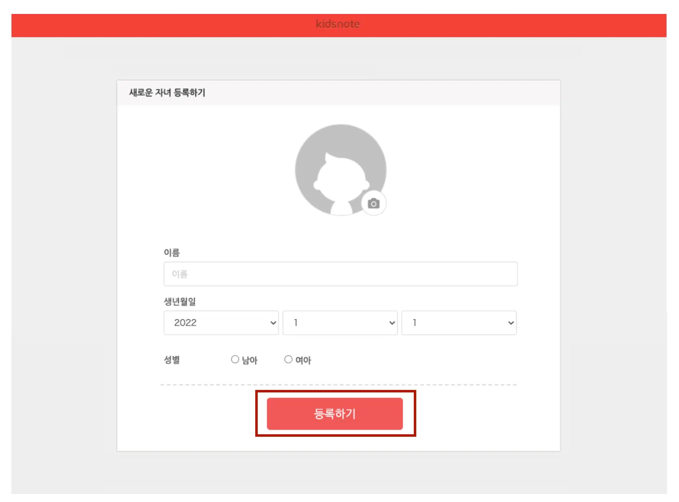 새롭게 추가할 자녀의 정보를 입력 후, 등록하기를 선택해 주세요.