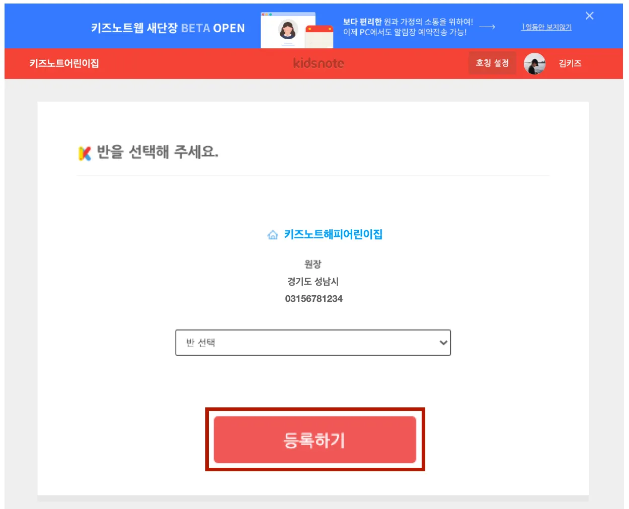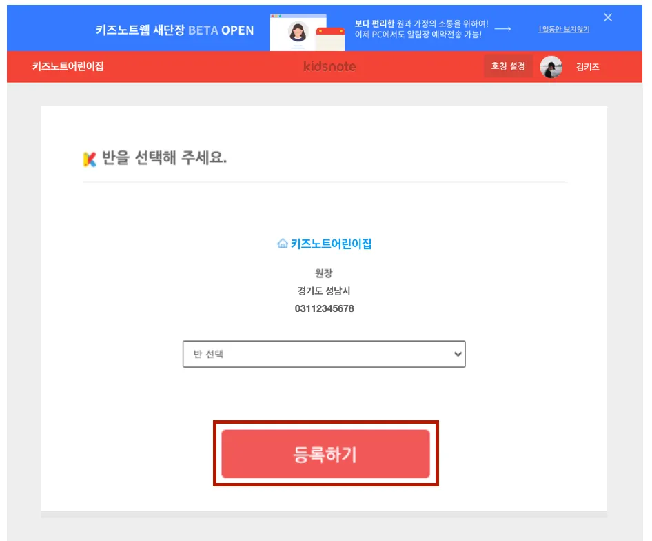 해당 원에서 자녀가 소속될 반을 선택해주세요.