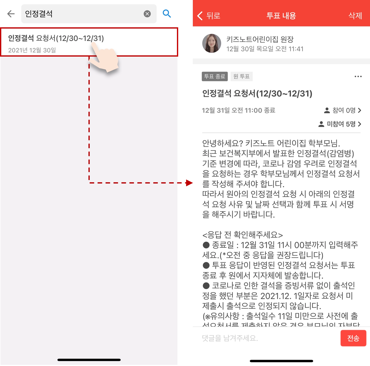 - 검색 결과 목록이 보여지며, 입력한 검색어와 일치하는 단어는 두꺼운 글씨로 보여집니다.