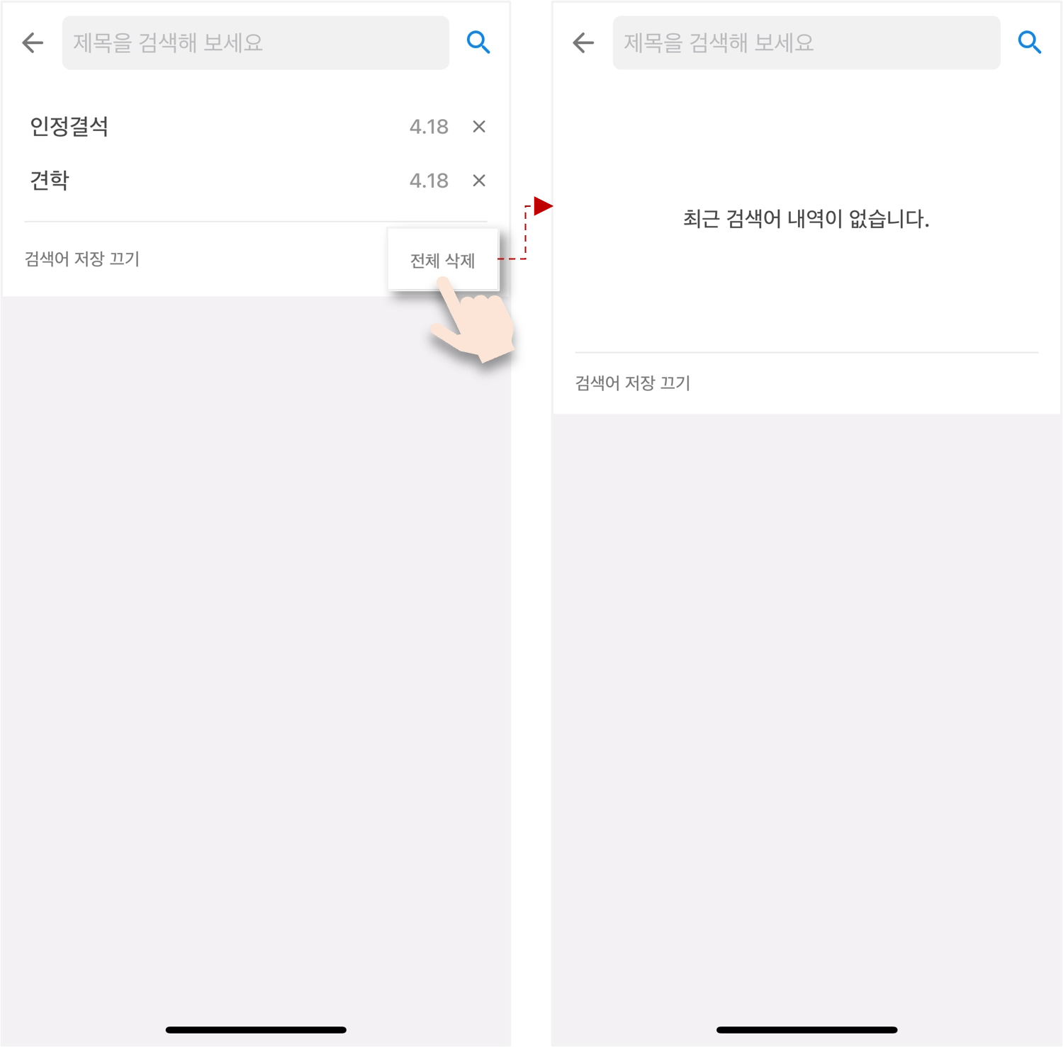 우측 하단 전체 삭제 클릭 시 입력했던 검색어를 모두 삭제할 수 있습니다.