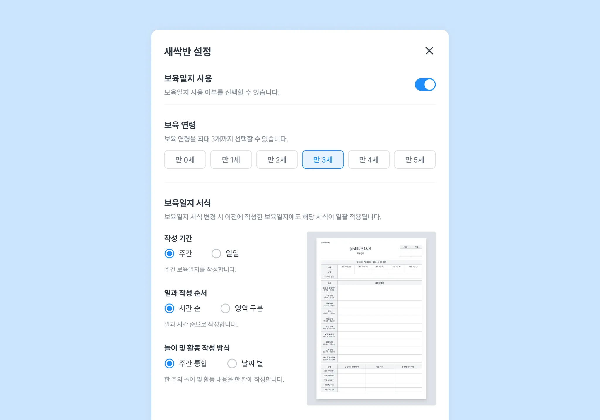 2024 개정 평가제를 반영한 보육일지 작성 가이드도 함께 제공하고 있어요.