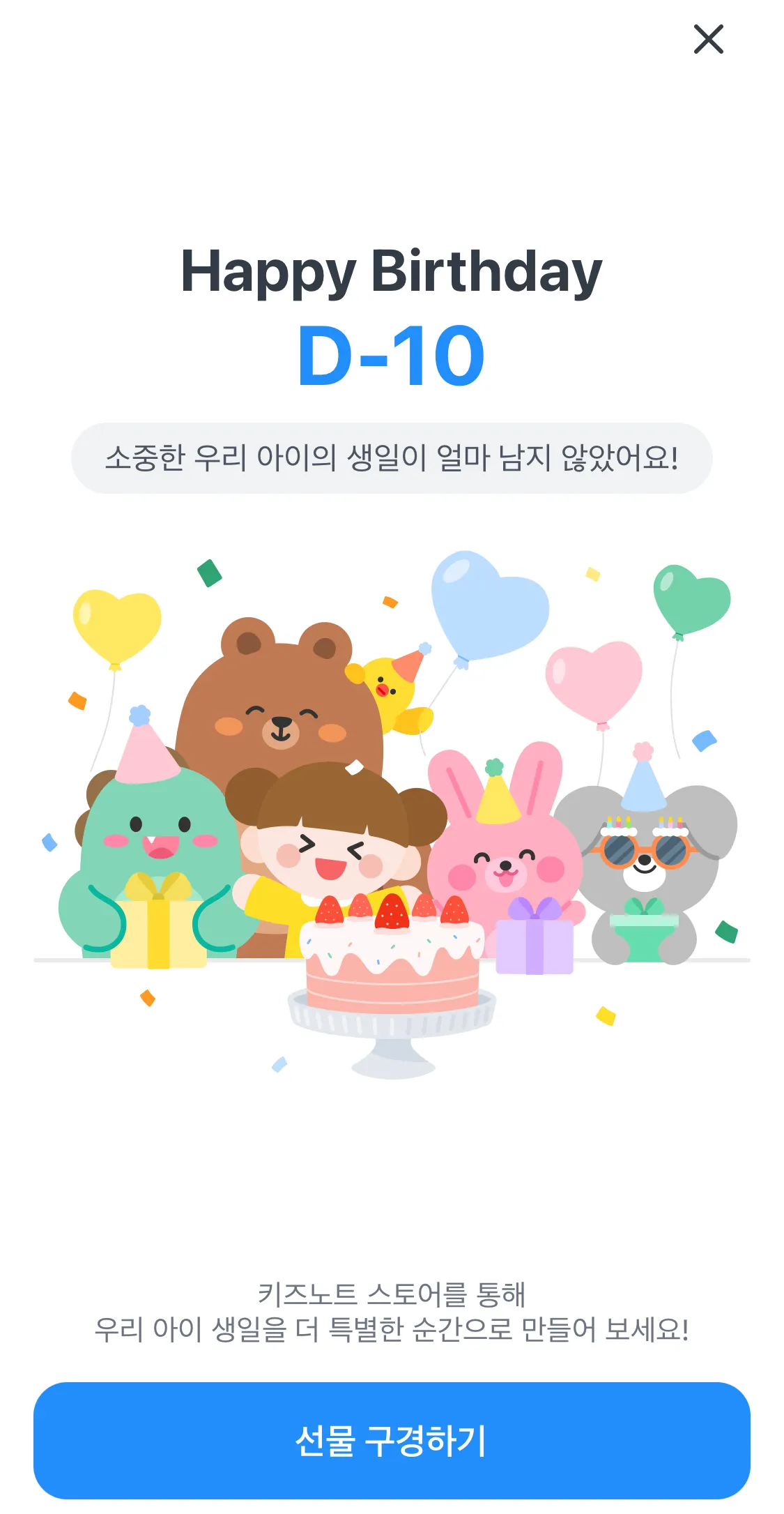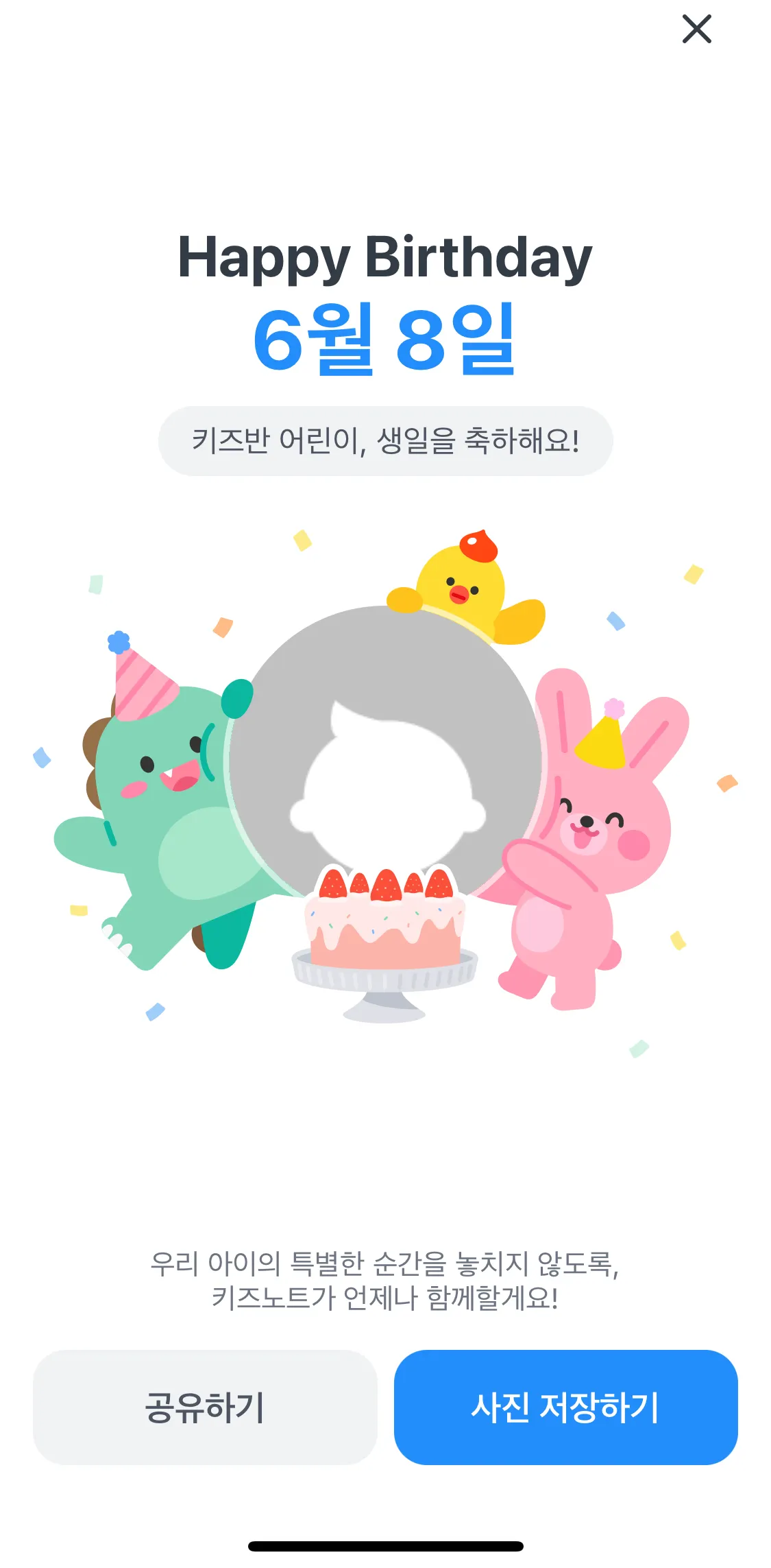 소중한 우리 아이의 생일을 귀여운 키즈노트 프렌즈 친구들이 함께 축하해주도록 변경되었어요.