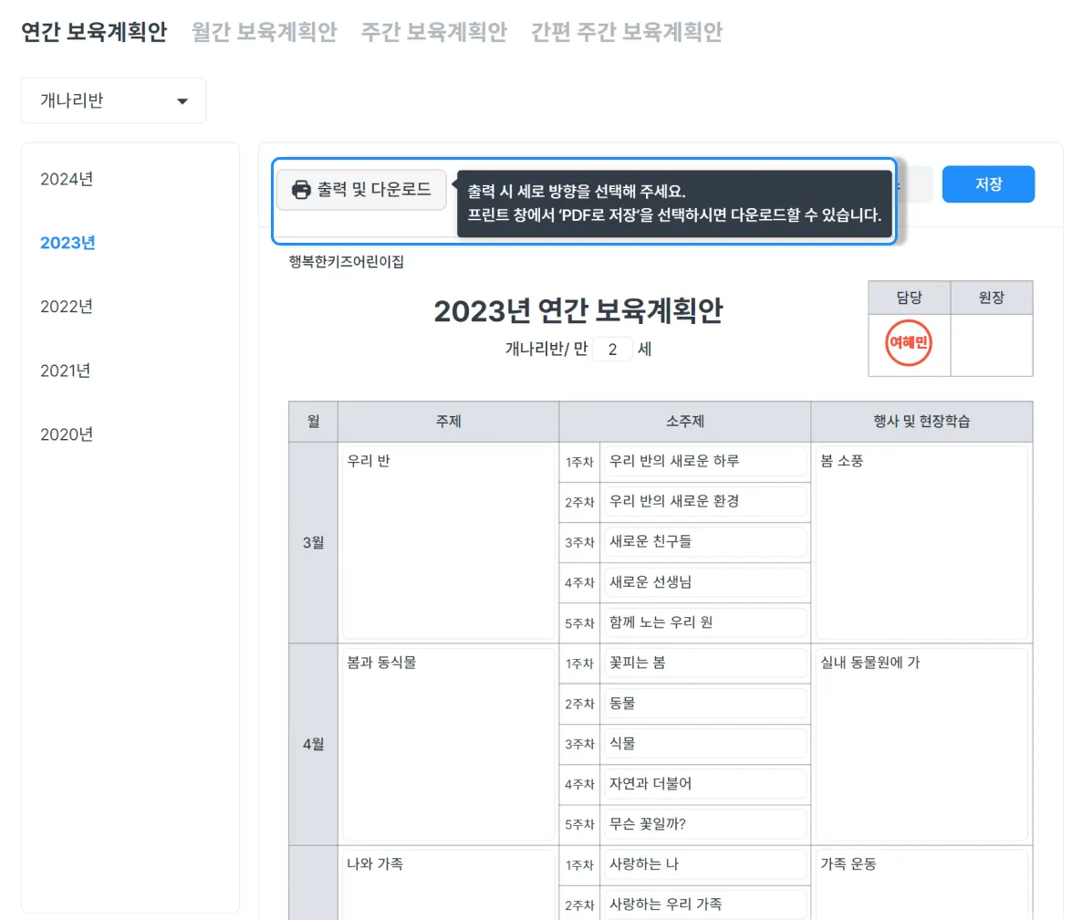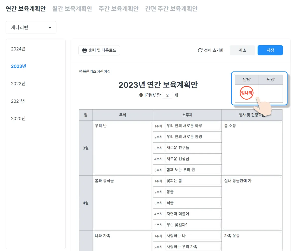 - 담당 영역 : 교사/원장 모두 서명 가능