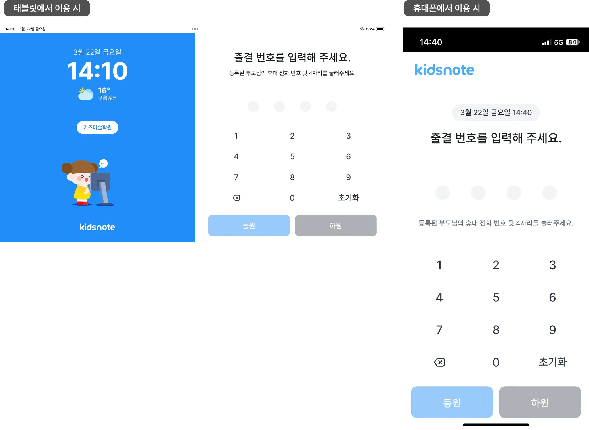 키패드출결로 학생이 직접 등/하원을 입력할 수 있어요.