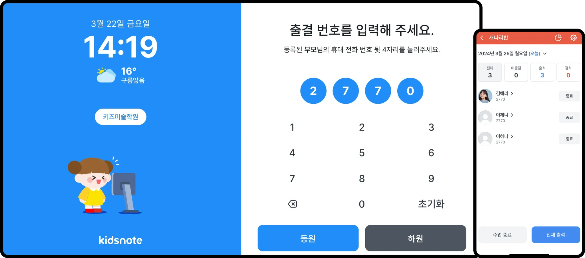 모든 것이 새로워진, 키즈노트 키패드출결 서비스