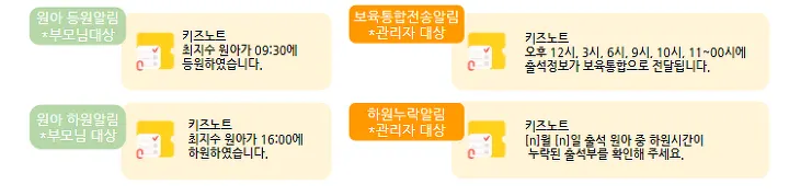 1. 키즈노트 출석부, 보육통합 전달 시간 안내