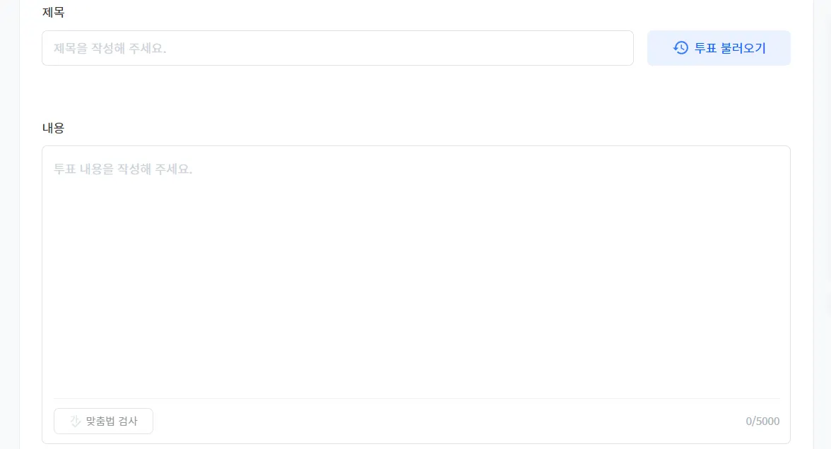 투표의 제목과 내용(최대 5000자)를 작성해주세요.