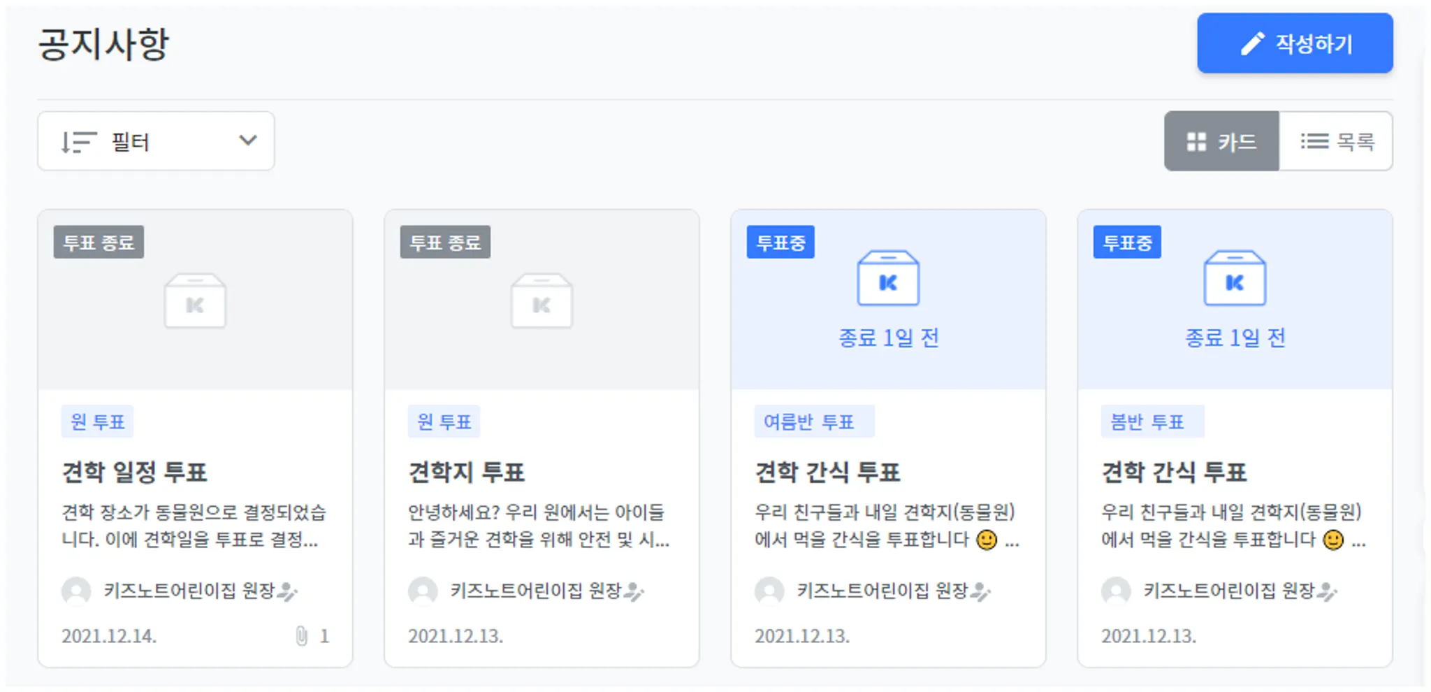 - 투표 종료일을 설정해 놓은 경우 목록에서 투표 종료일이 표시됩니다.