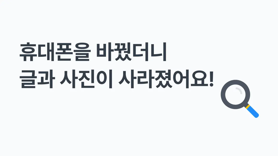 스마트폰을 변경하고 게시물이 하나도 보이지 않아 당황스러우셨다면, 휴대폰 변경 후 기존의 아이디로 로그인 하셨는지 확인해주세요!