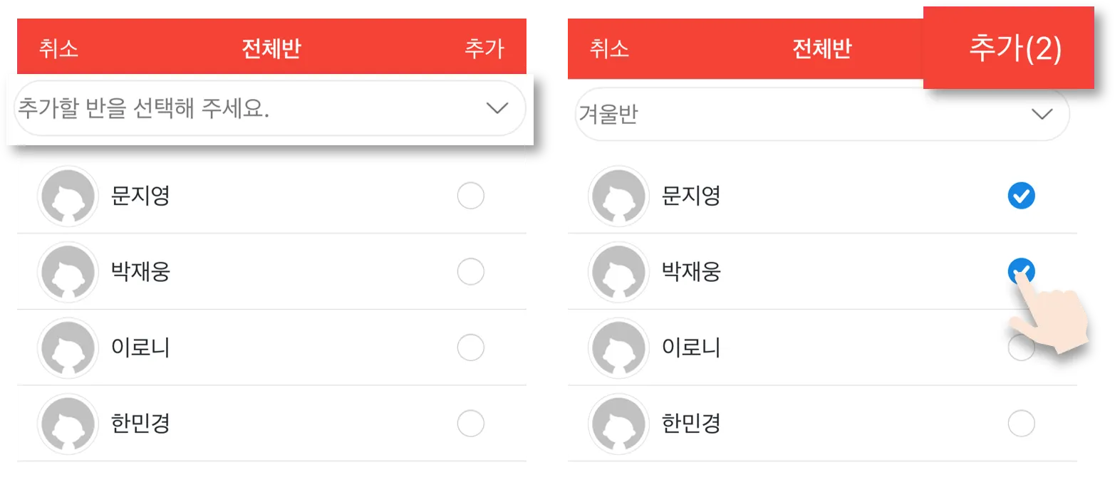 반 이동과 반 추가는 기능이 다르니 꼭 확인해주세요.