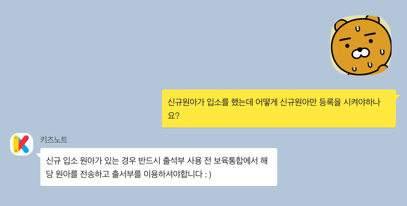학기 중간에 입소한 원아들은 어떻게 출석부에 추가하면 좋을 지 궁금하셨죠? 이번 글에서는 학기중 입소한 신규 원아들을 등록 하는 방법을 알려드릴게요.
