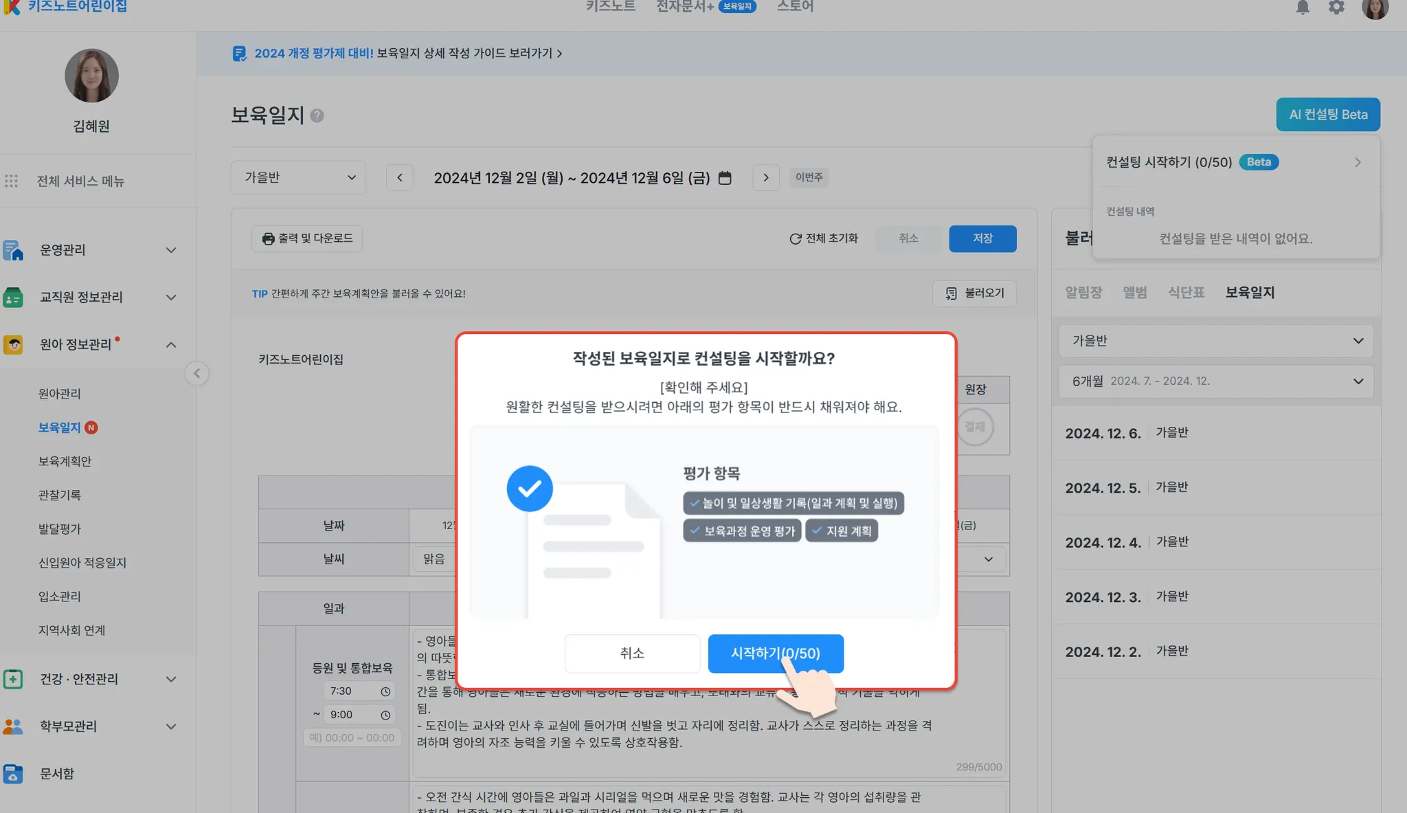 보육일지 AI 컨설팅 활용하기