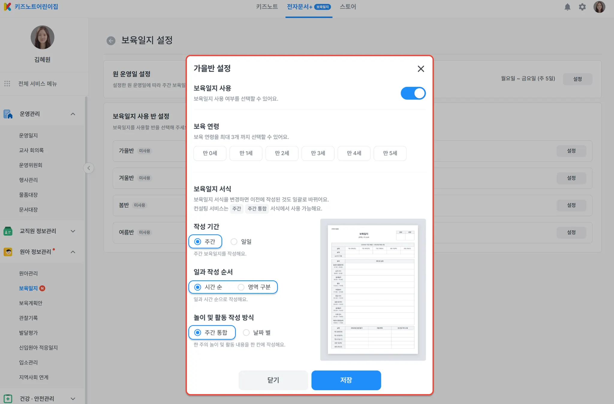 보육일지 AI 컨설팅 지원 서식 설정