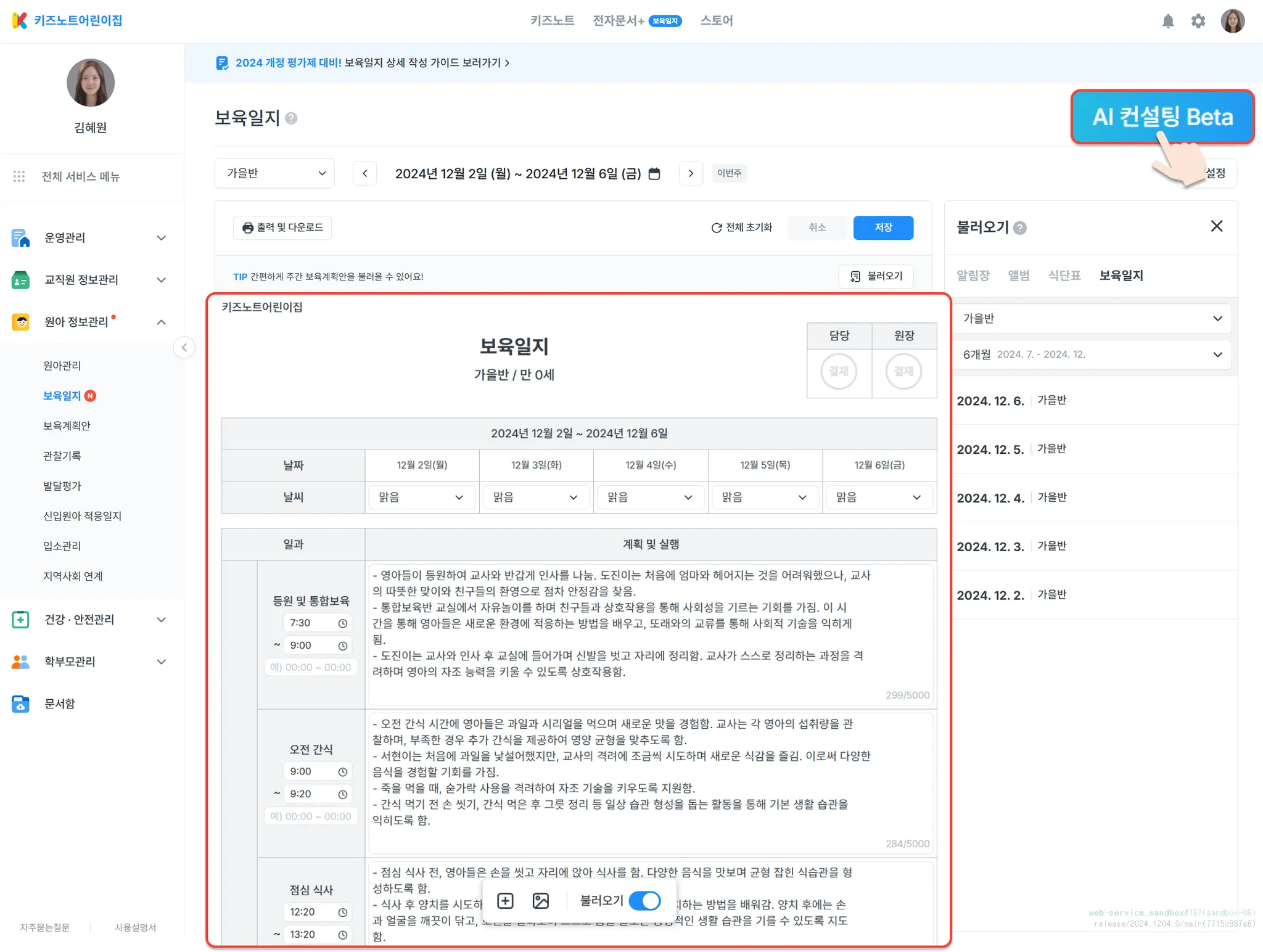 키즈노트 AI가 제공하는 보육일지 피드백과 컨설팅을 경험해보세요!