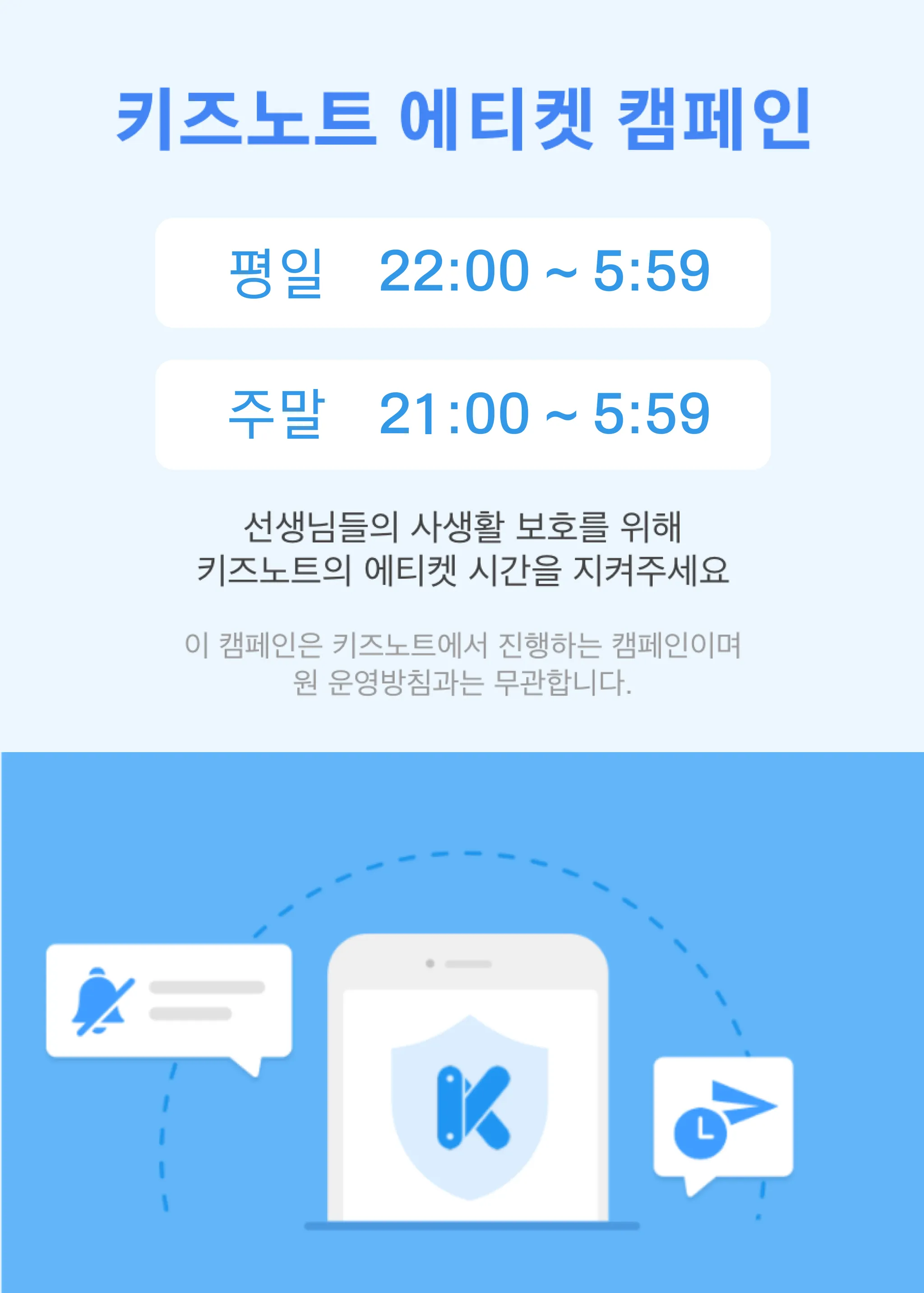 키즈노트 에티켓 캠페인 시간은 추후 변경될 수 있음을 안내 드립니다.