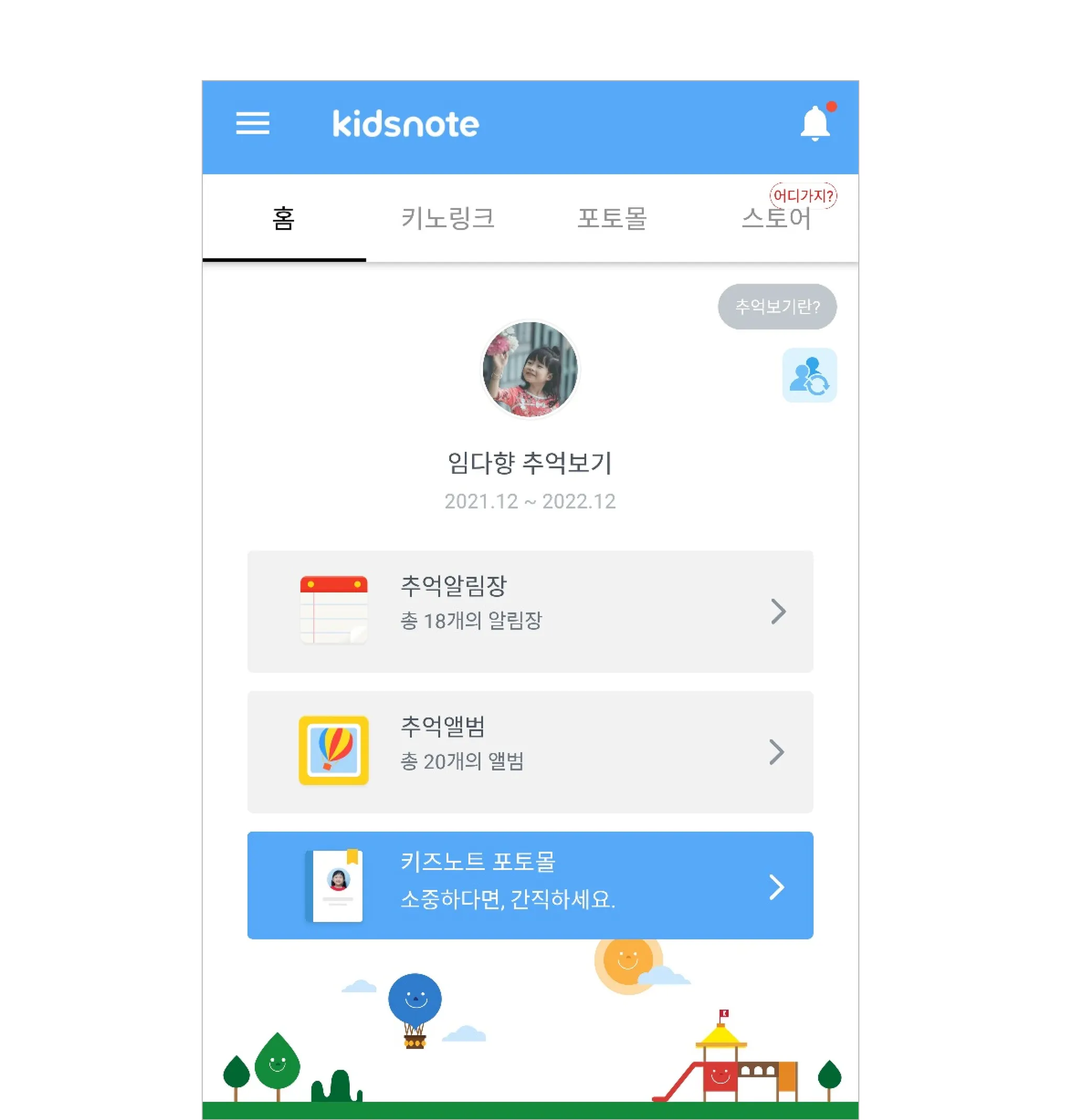 모든 원을 졸업하고, 더 이상 키즈노트를 사용하지 않아도, 오래 오래 아이의 단 하나뿐인 추억을 확인할 수 있습니다.