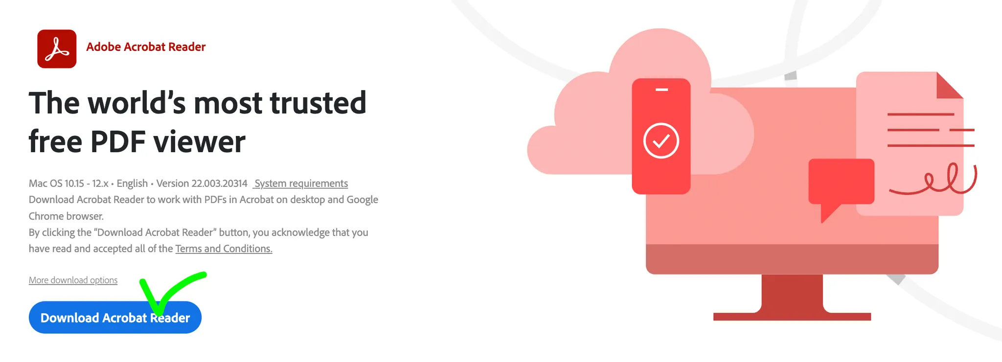어도비 다운로드 센터에서 Download Acrobat Reader 버튼을 눌러 설치 프로그램을 다운로드해주세요.