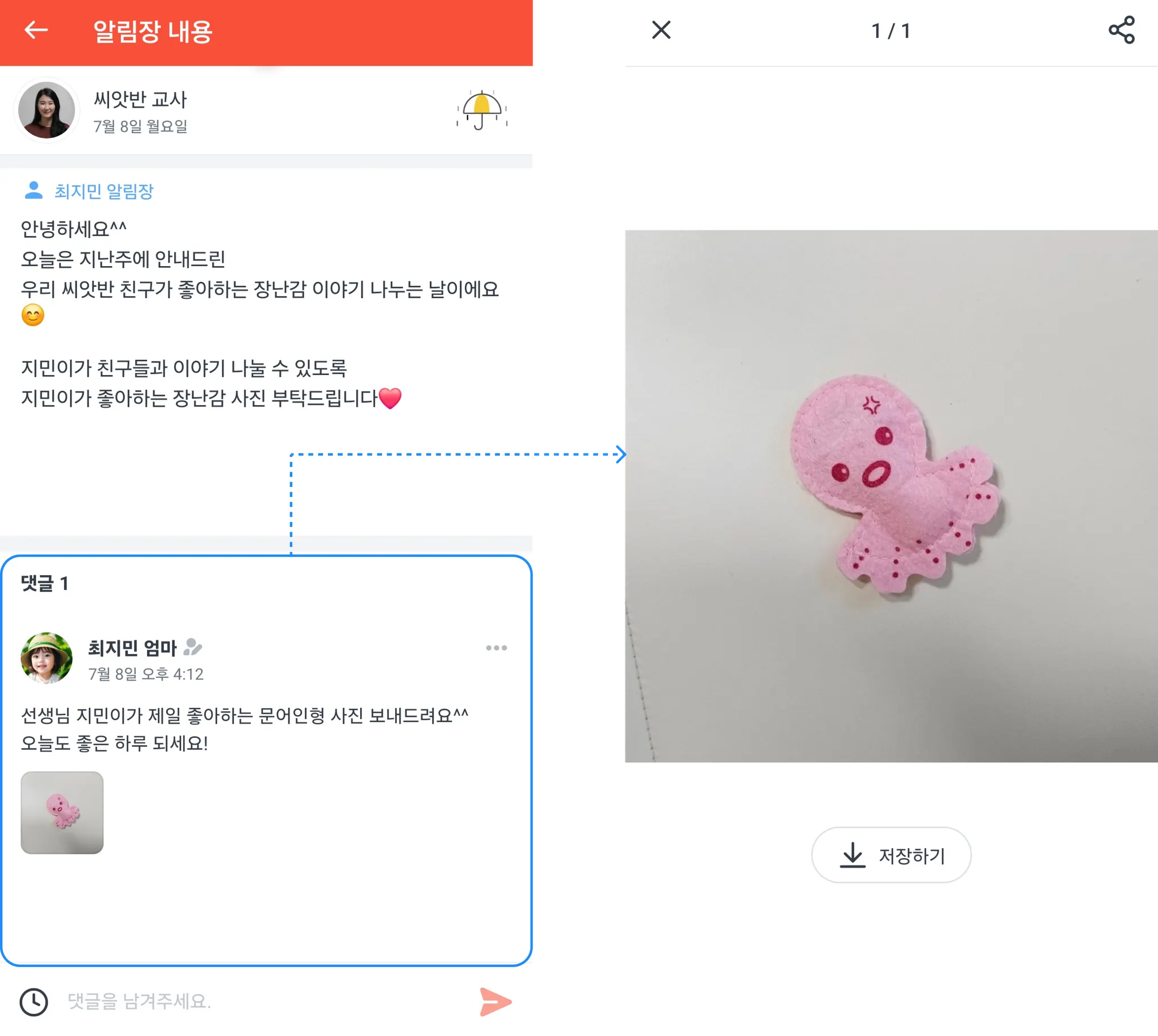 알림장 댓글을 통해 선생님과 소통해 보세요!