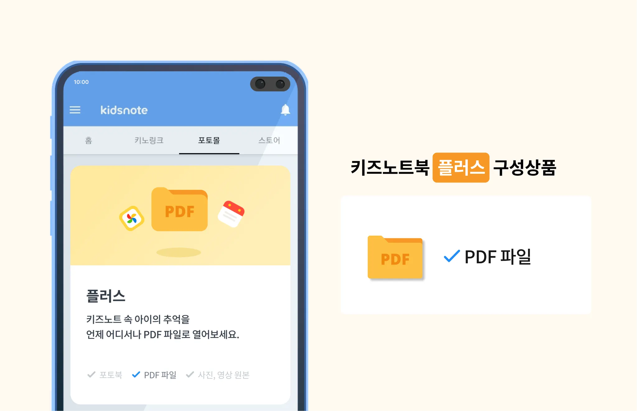키즈노트북 플러스 서비스는 키즈노트 알림장과 앨범에 쌓여있는 우리 아이의 모든 사진과 영상을 PDF파일로 오래오래 안전하게 간직할 수 있는 서비스 입니다.