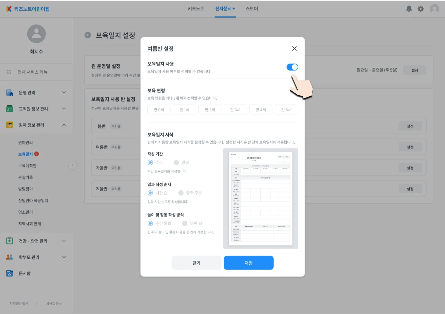 보육일지 사용 여부를 ON으로 설정해주세요.