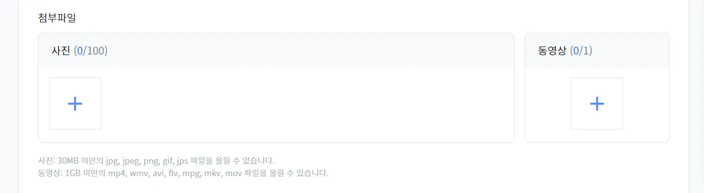 앨범에 첨부파일 추가는 필수항목입니다. 사진또는 동영상을 1개 이상 추가해주세요. - 사진 첨부 : 사진 최대 100장, 300MB 미만의 jpg, jpeg, png, gif, jps 파일을 올릴 수 있습니다. - 동영상 첨부 : 동영상 최대 1개, 1GB 미만의 mp4, wmv, avi, flv, mpg, mkv, mov 파일을 올릴 수 있습니다. - 사진 순서 변경 : 첨부된 사진을 원하는 위치로 이동시켜 사진 순서를 변경할 수 있습니다. 준비중