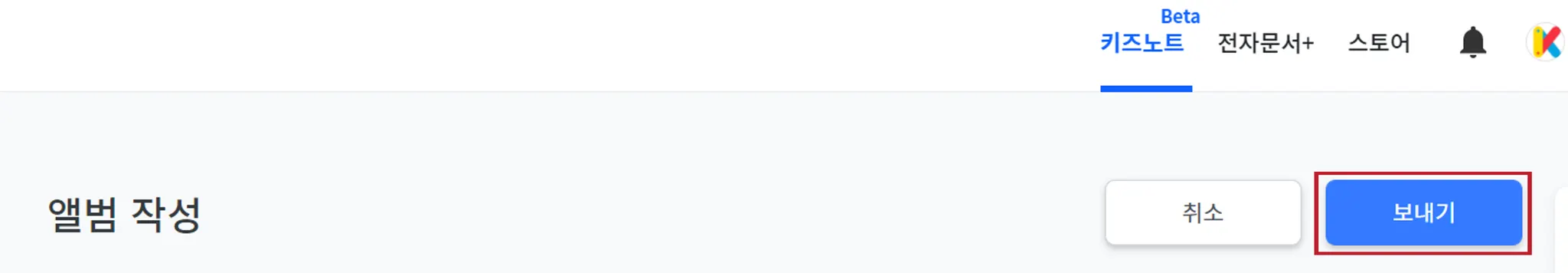 앨범 작성이 완료되었다면 보내기를 선택해주세요. 보내기를 누르면 앨범이 즉시 발송됩니다.
