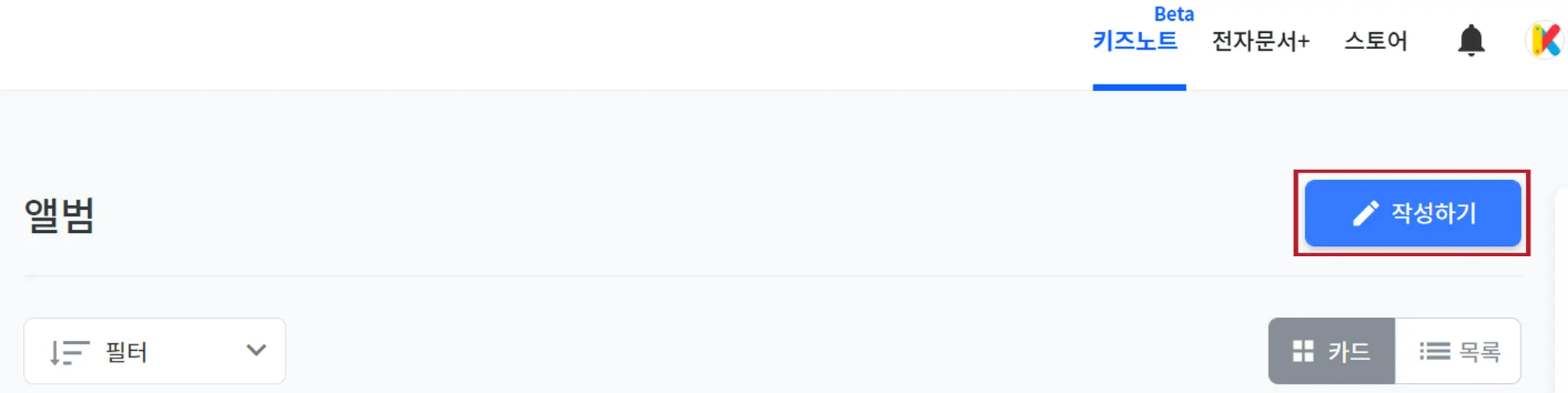 앨범 상단 작성하기를 선택해 앨범 작성을 시작합니다.