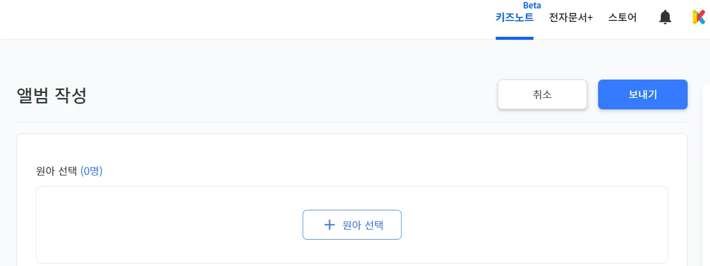 앨범을 받을 원아 선택을 해주세요. 선택한 원아의 부모님이 함께 앨범을 볼 수 있습니다.