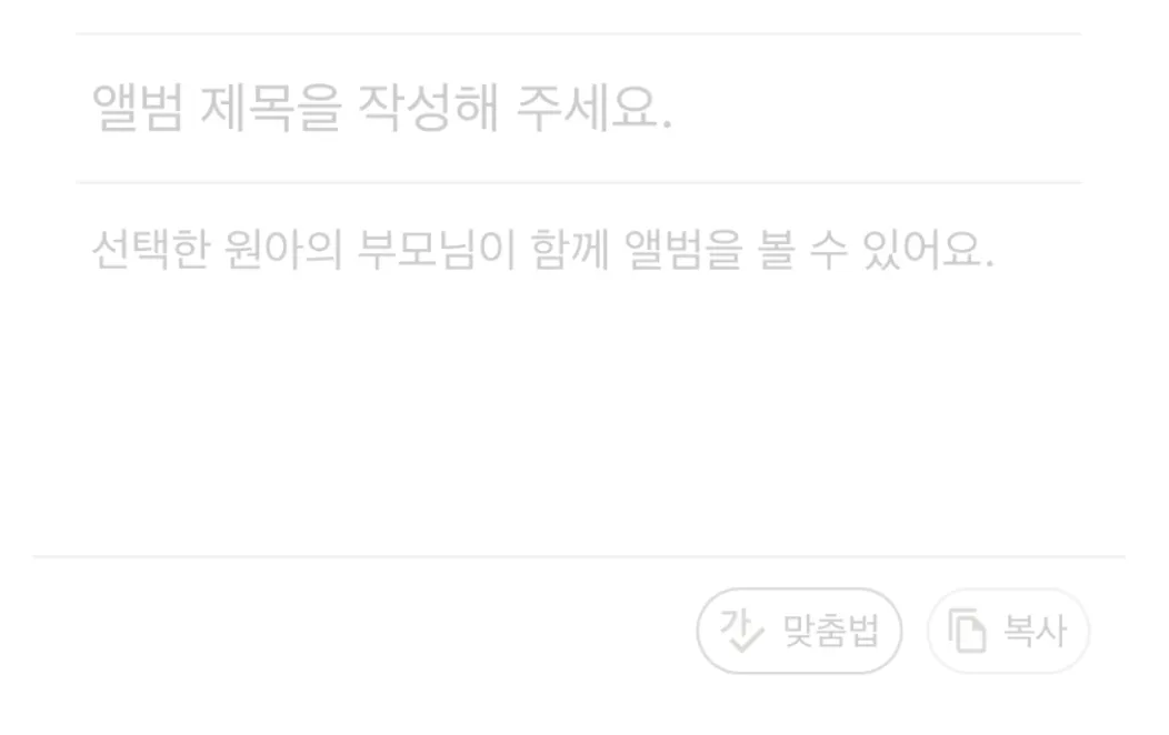 앨범에서도 맞춤법 검사 기능을 활용하여 맞춤법 및 띄어쓰기 오류를 확인하고 수정할 수 있습니다.