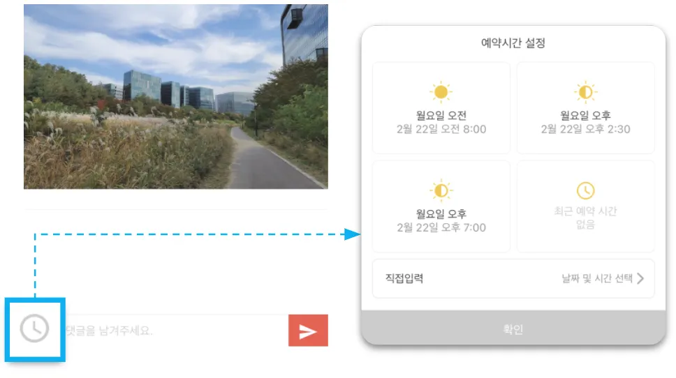 앨범에서도 알림장처럼 댓글 예약 기능을 활용할 수 있습니다.