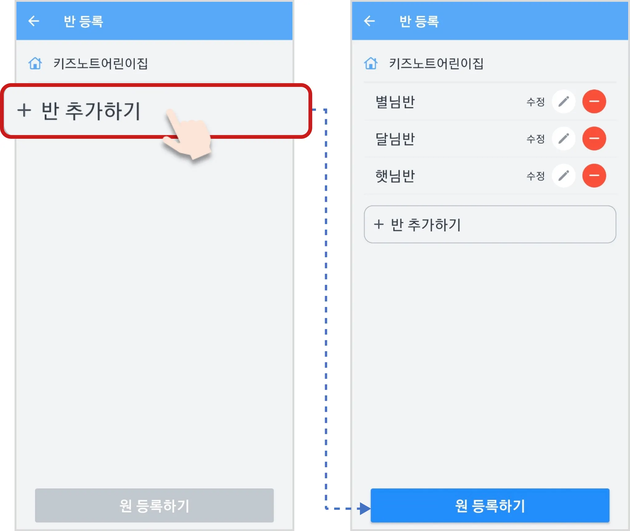 우리 원에 맞게 반을 등록해주세요. 최소 1개의 반이 있어야 원 등록이 완료됩니다.