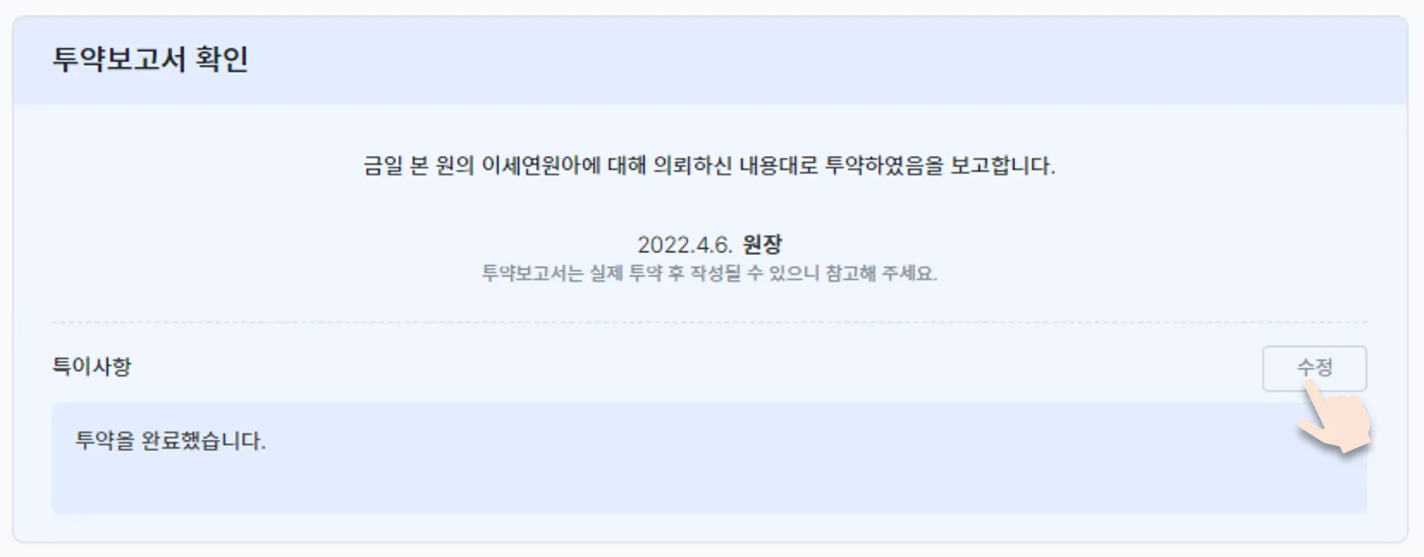특이사항을 잘못 기입한 경우 수정을 눌러 수정할 수 있습니다.