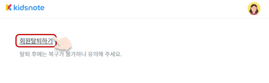 - 회원탈퇴 후에는 모든 콘텐츠가 삭제되며 복구가 불가합니다.