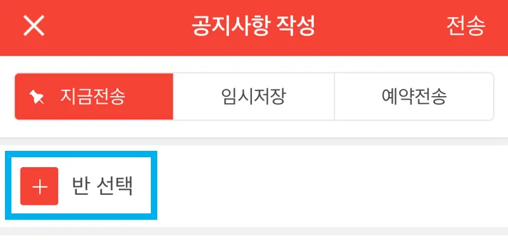 공지사항을 받을 반 선택을 해주세요.