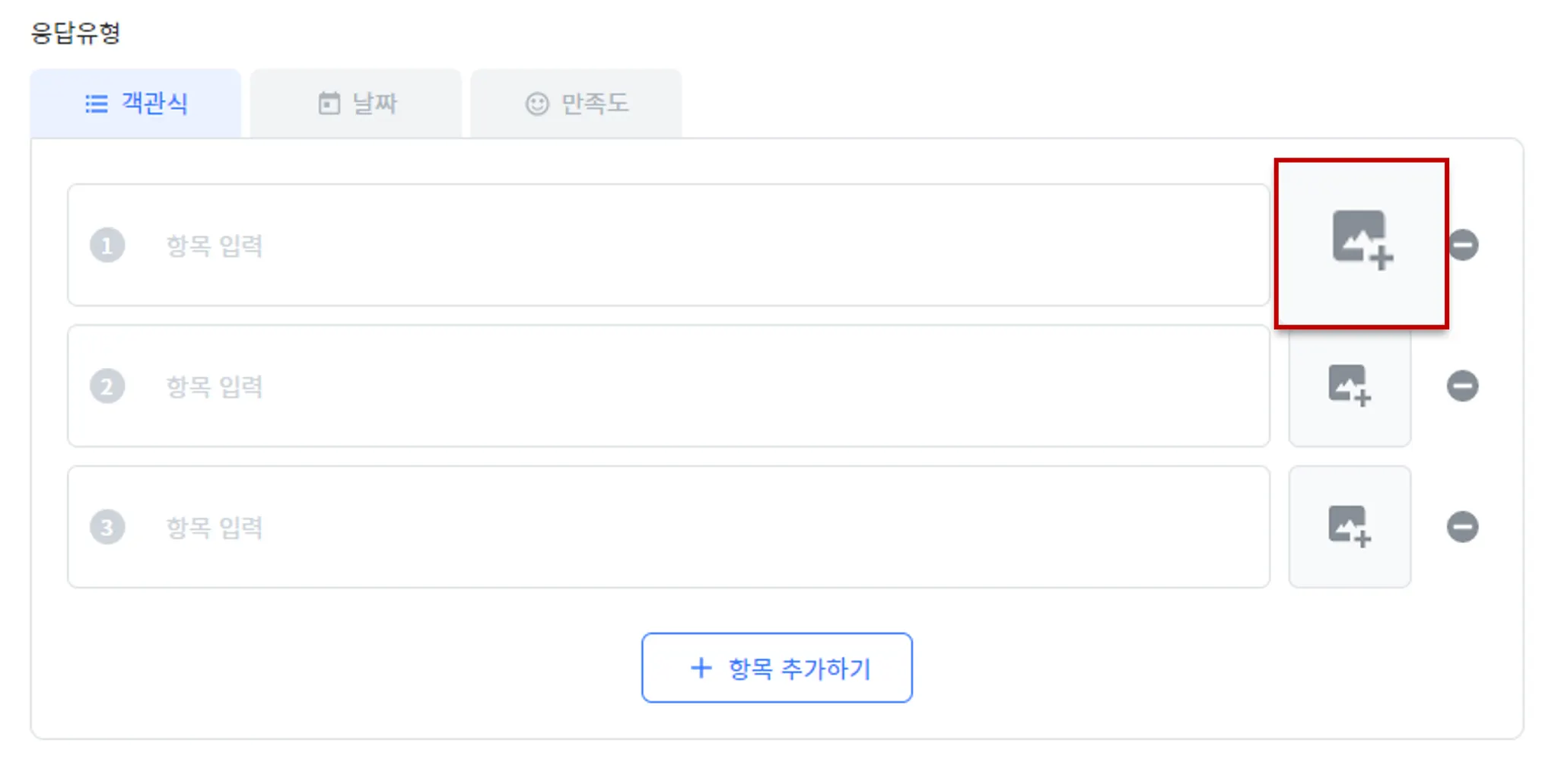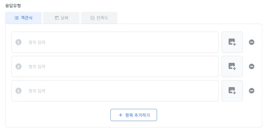 - 객관식 : 항목을 직접 입력하여 설정 할 수 있습니다.