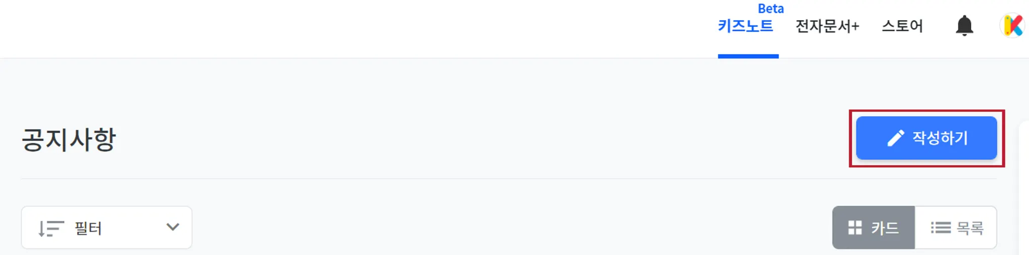 공지사항 상단 작성하기 를 선택하고, 투표만들기를 선택하여 작성을 시작합니다.