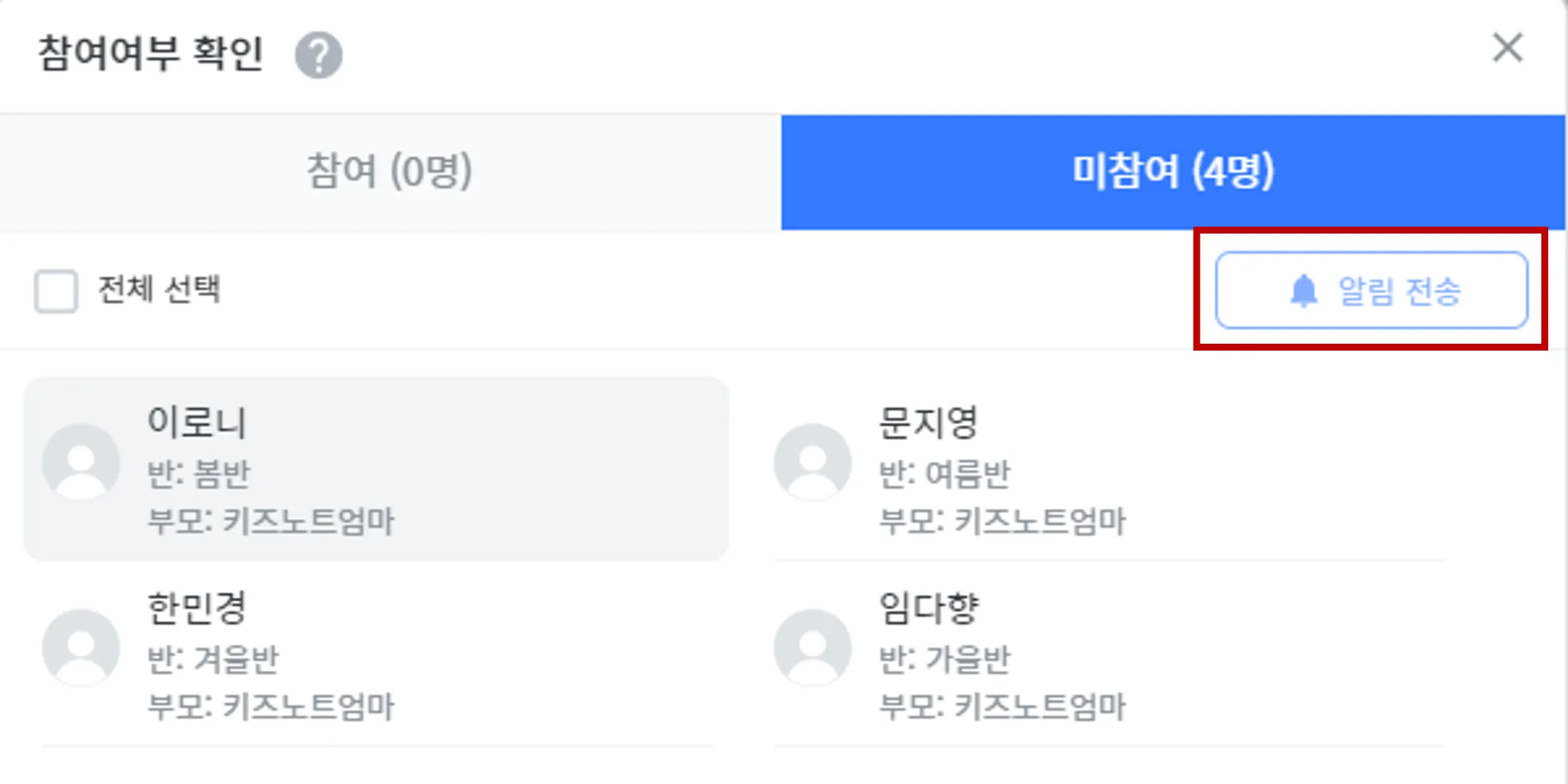 - 미참여자는 투표에 참여하지 않은 원아 명단입니다.